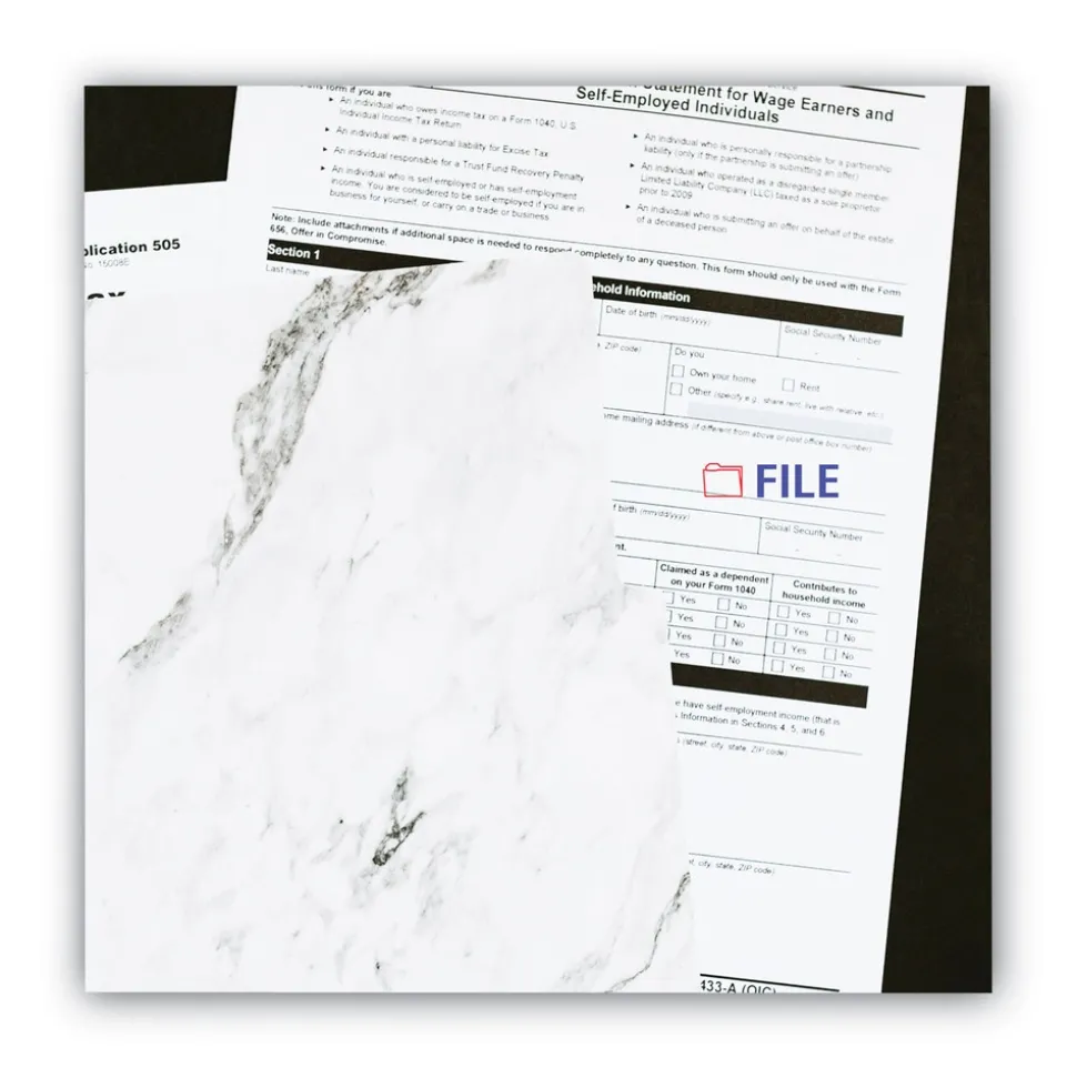 1.63 in. x 0.5 in. FILE Pre-Inked Shutter Stamp – Red/Blue – 035534