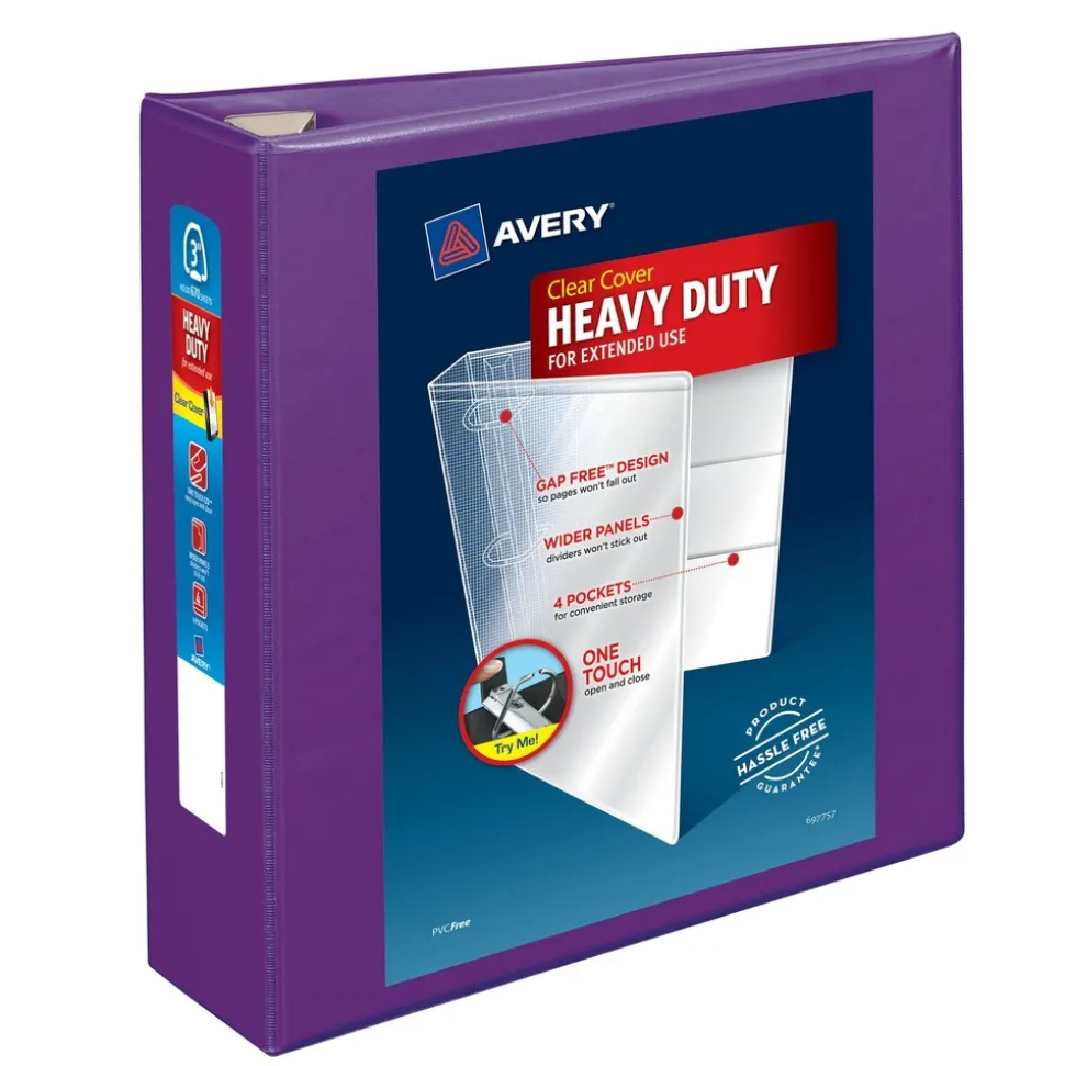 Avery 79810 3 One Touch EZD Rings 3 in. Capacity 11 in. x 8.5 in. Heavy-Duty View Binder with DuraHinge – Purple (4/Carton)