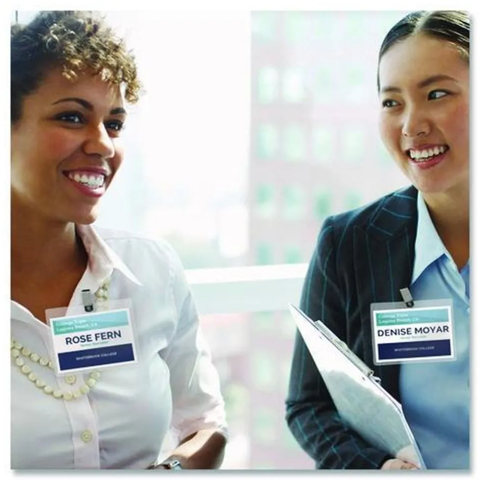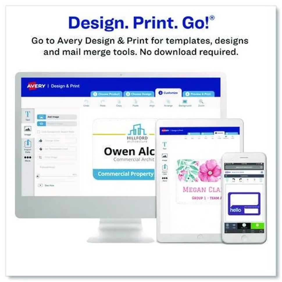 These badges feature a durable, easy-to-load, open top, pocket-style design. White micro-perforated name badge inserts are printable on both sides and separate cleanly leaving smooth edges. Create badges with text and colorful graphics using free designs and templates with Avery Design & Print. Plastic holder is reusable and displays names clearly. 8.5 in. x 11 in. sheets for laser and inkjet printers.