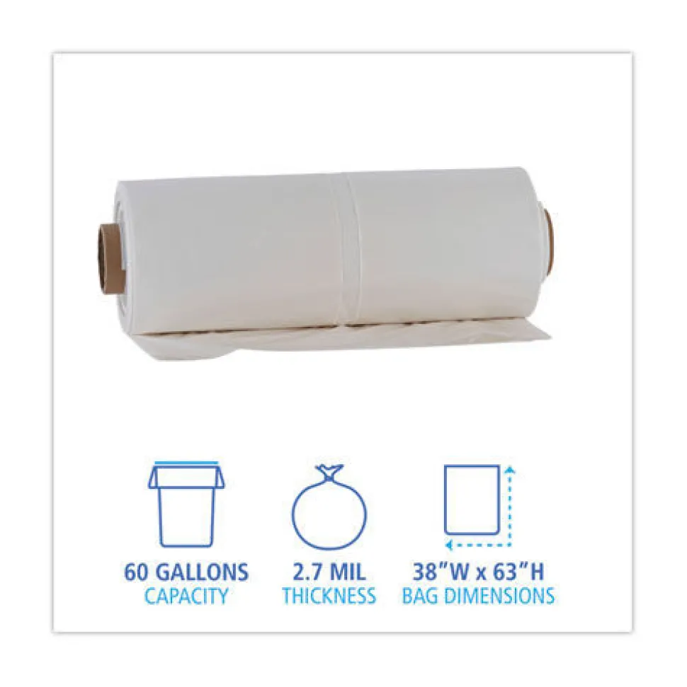 Boardwalk K7663WCK 60 Gallon 2.7 mil 38 in. x 63 in. Industrial Drum Liners Rolls – Clear (50/Carton)
