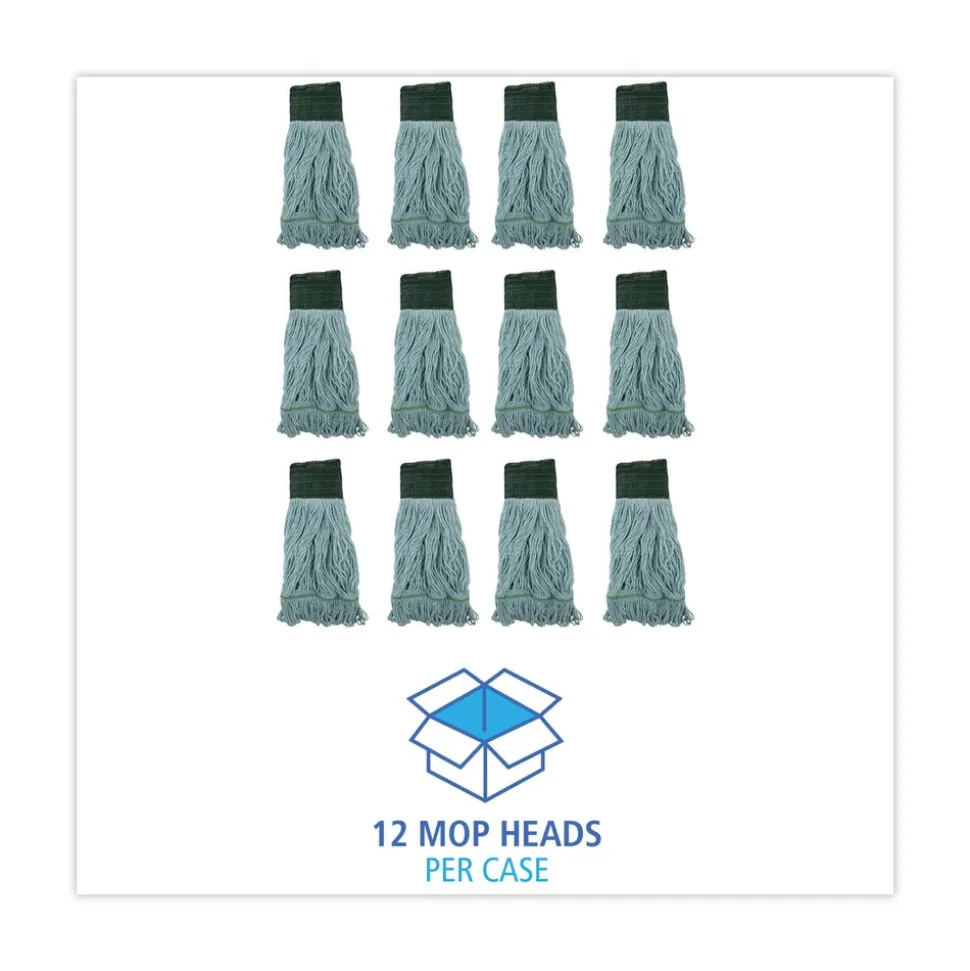 Boardwalk EcoMop is a quality mop head with looped-end construction. Built with a thick and durable tailband that provides longevity and excellent laundering performance. Constructed from high-quality synthetic content that is designed to increase abrasion resistance. A single mop head absorbs more than four times its weight in water. The 4-ply synthetic and cotton fibers shed less lint. No post-recycling dyes.