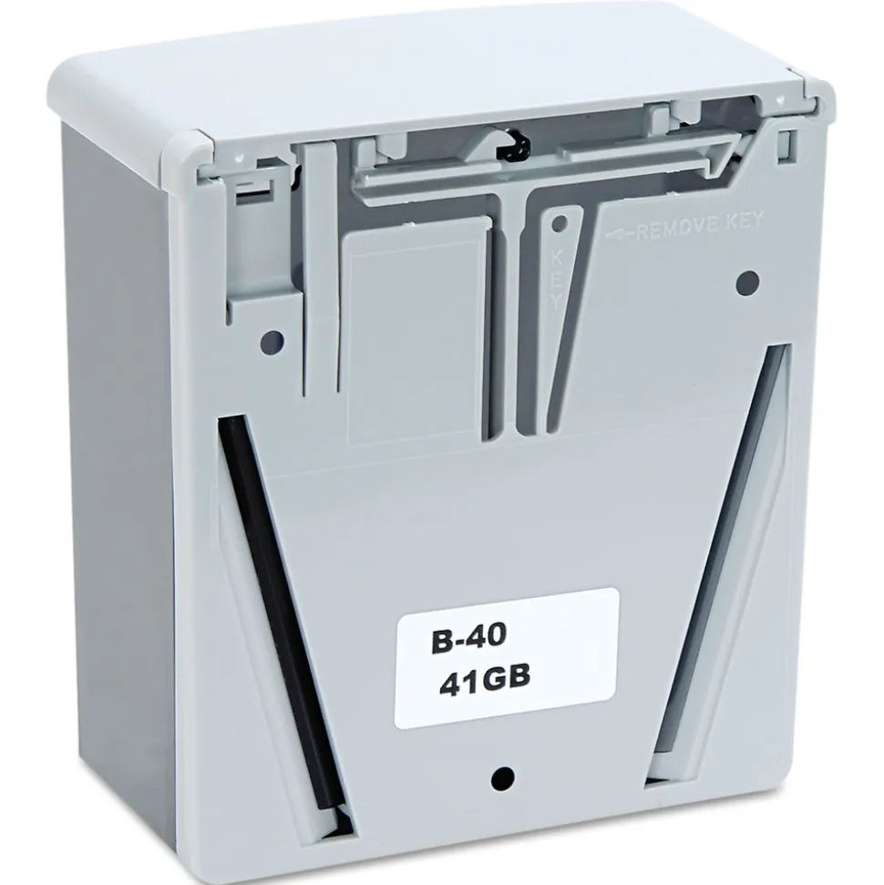 Two-tone styling in black and gray. Push-in valve directs operating pressure toward wall. Corrosion-resistant valve dispenses liquid soaps, lotions and synthetic detergents. Translucent container for soap level visibility. Concealed wall fastening. Easy top-filling. 40 fl. oz. capacity.