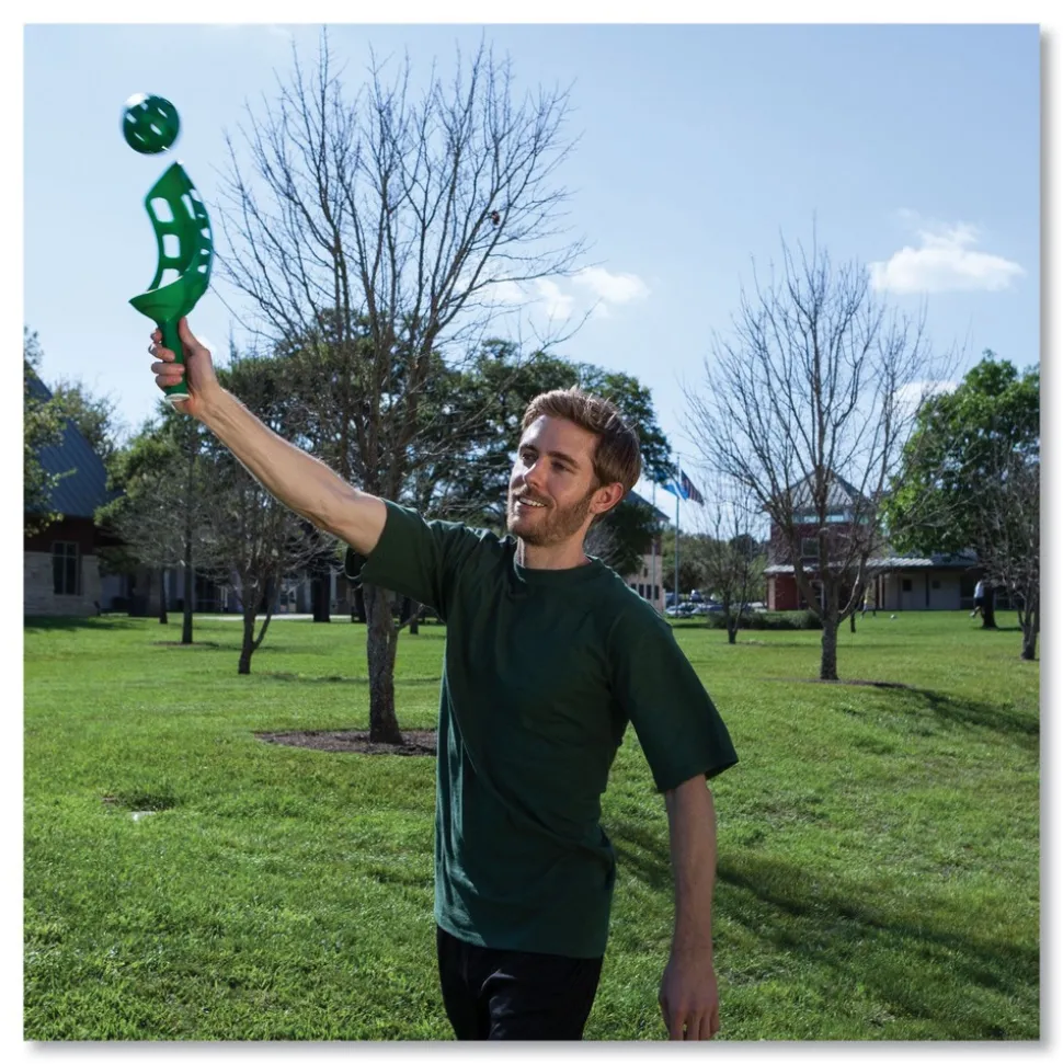 This set strengthens eye hand coordination and teaches beginner skills for lacrosse. Durable construction makes it ideal for indoor and outdoor use. The perfect way to promotes active play and group activities. Fun, eye-catching assorted colors.