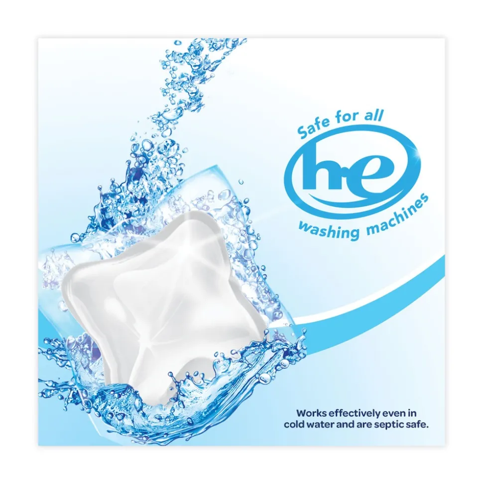 Conveniently pre-measured with concentrated detergent that is free of perfumes and clear of dyes to safely lift away tough dirt and stains. Simple to use – just drop in washing machine drum. Its hypoallergenic formula is specially designed for people with sensitive skin.