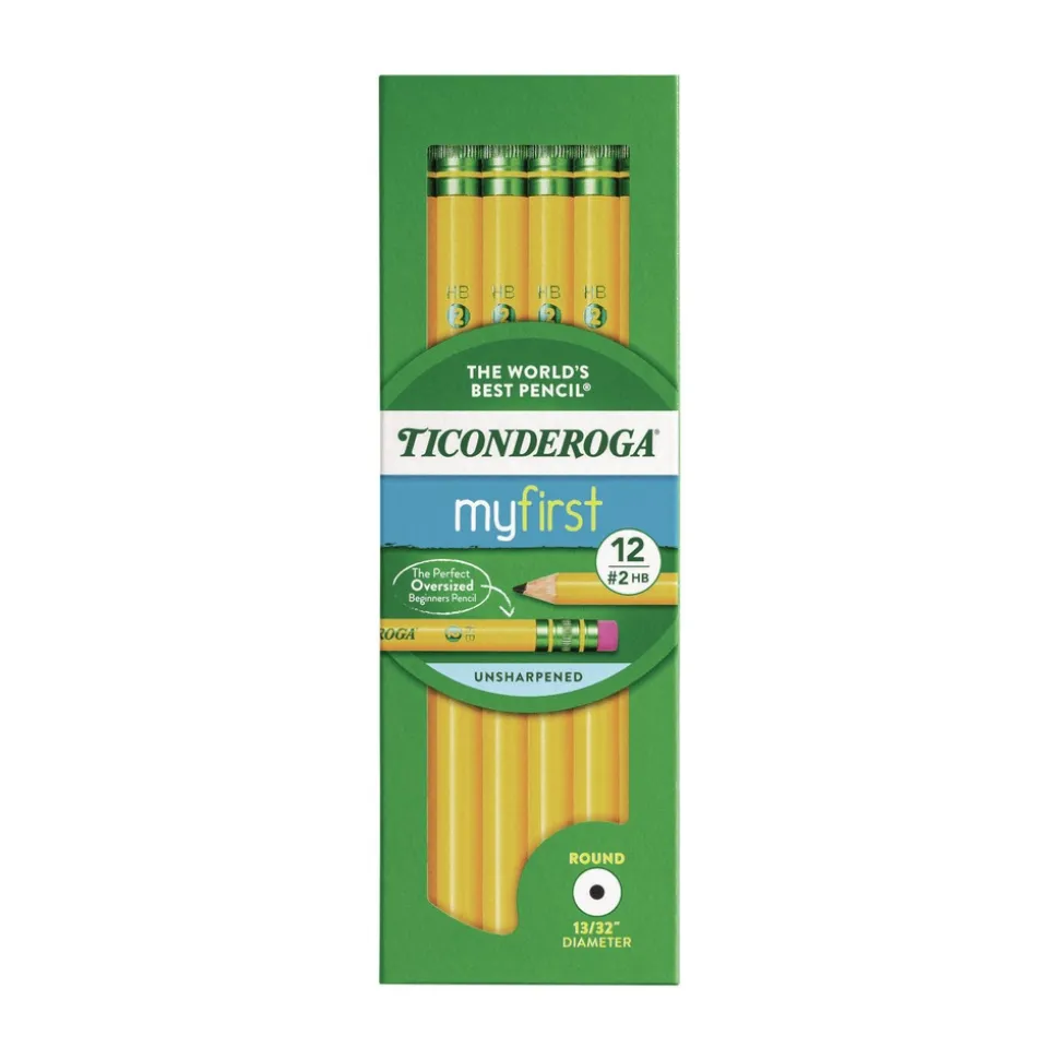 Dixon X13308 Ticonderoga Beginners HB (No. 2) Woodcase Pencil with Eraser and Microban Protection – Black Lead/Yellow Barrel (1-Dozen)