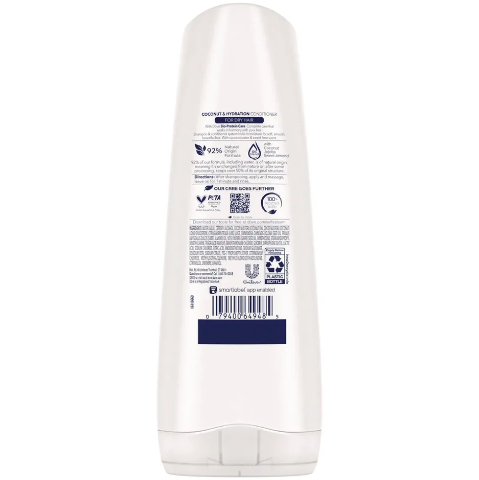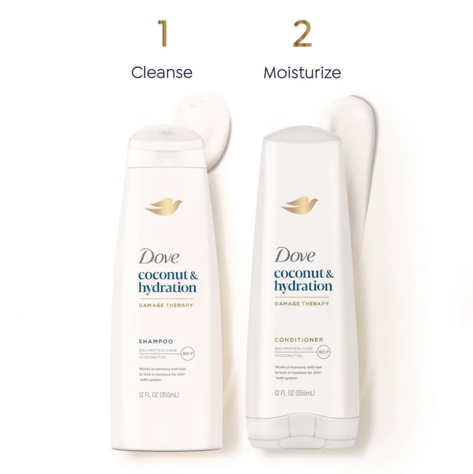 92% of our formula, including water, is of natural origin, meaning it’s unchanged from nature or, after some processing, keeps over 50% of its original structure. The formula won’t weigh your hair down, and because it’s progressively nourishing, your hair gets better and better, wash after wash. As well as caring for your hair, Dove Coconut and Hydration Damage Therapy Conditioner smells heavenly too. The refreshing scent of hydrating coconut water and sweet lime lifts your mood as well as leaves your hair refreshed with every wash. After shampooing, apply Dove Ultra Care Coconut and Hydration Conditioner and massage, leave on for one minute and rinse. For best results and constantly hydrated hair, use this conditioner daily after using the Dove Ultra Care Coconut and Hydration Shampoo. Dove Coconut and Hydration is a hydrating shampoo and conditioner system that locks in moisture and nourishes dry hair, leaving it soft, smooth, and beautiful. This hair care system is ideal for dry hair that needs an extra dose of hydration and moisture, as it nourishes hair from root to tip. At Dove, our vision is of a world where beauty is a source of confidence, and not anxiety. So, we are on a mission to help the next generation of women develop a positive relationship with the way they lookreaching over 1/4 of a billion young people with self-esteem education by 2030. We are also committed to a landmark new initiative as part of our 2025 commitment to reduce plastic waste; reducing over 20,500 metric tons of virgin plastic annually by making the iconic beauty bar packaging plastic-free globally; launching new 100% recycled plastic bottles; and trialing a new refillable deodorant format that radically reduces plastic use. As one of the largest beauty brands in the world, we are revealing an agenda-setting commitment to tackle the global beauty industry’s plastic waste issue.