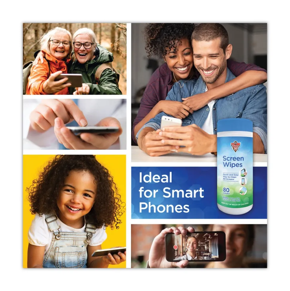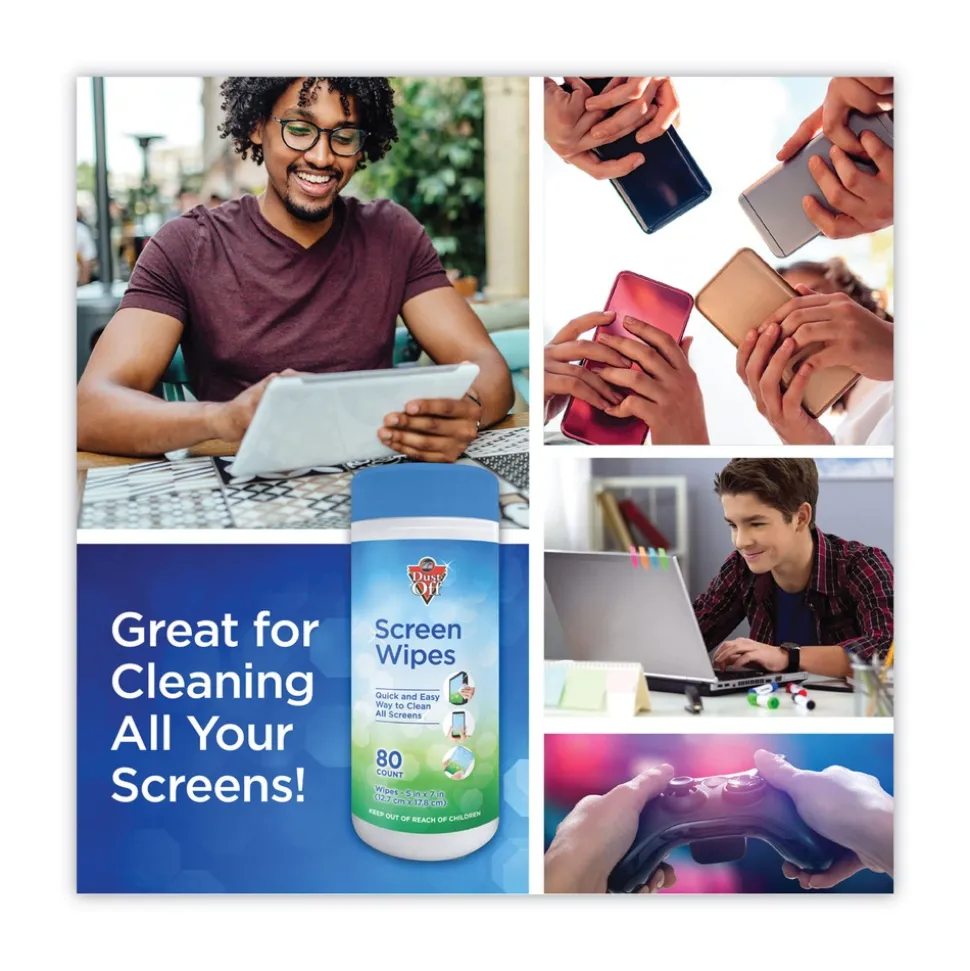 Show your screens some love! Dust-Off Screen wipes are a great way to keep your home and office screens clean. These, soft, thick pre-moistened wipes are safe for all screens large and small including smart phones, tablets, navigation screens, and smart watches. Also, great for laptops and monitors. Features a great citrus scent. Wipes stay fresh with the easy open/close lid.