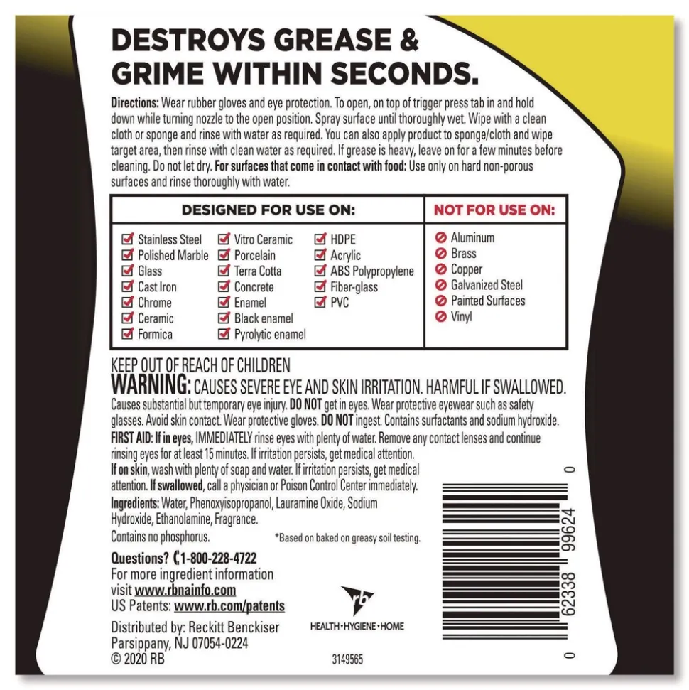 Delivers an effective clean to stoves, ovens, stove hoods, fryers, countertops, patio furniture and barbeque grills.