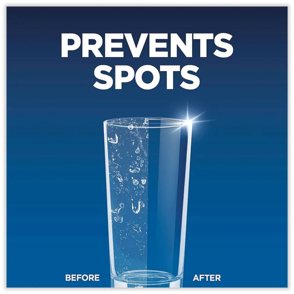 Works with your detergent to rinse away stubborn leftover food, spots and film.