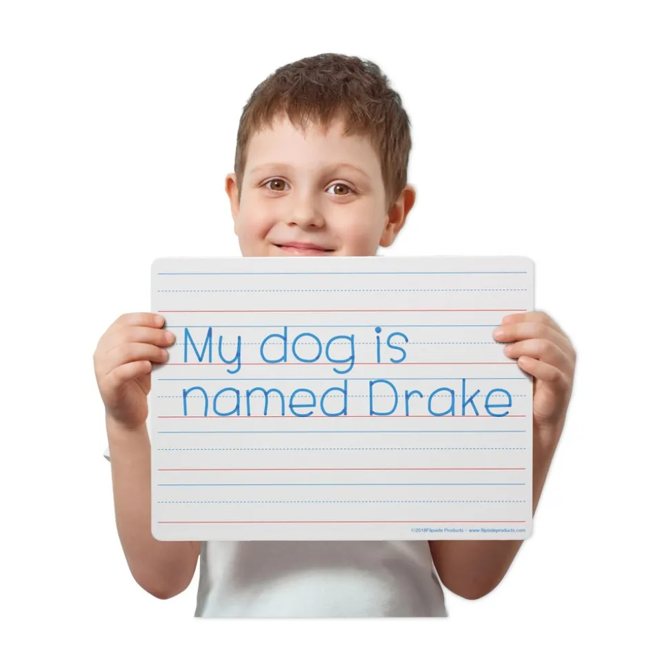 Flipside 12034 12 in. x 9 in. 2-Sided Red/Blue Ruled Dry Erase Board – White Surface (24/Pack)
