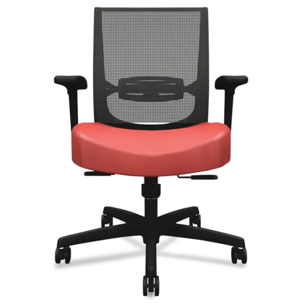 HON HONCMY1ACU67 Supports Up to 275 lbs. Convergence Mid-Back Task Chair with Synchro-Tilt and Seat Glide – Red Seat, Black Back/Base