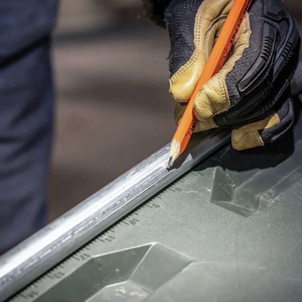 Lid features V-groove contoured for pipe, molded in ruler for easy measurement, and steel reinforced lock location for cable or padlock