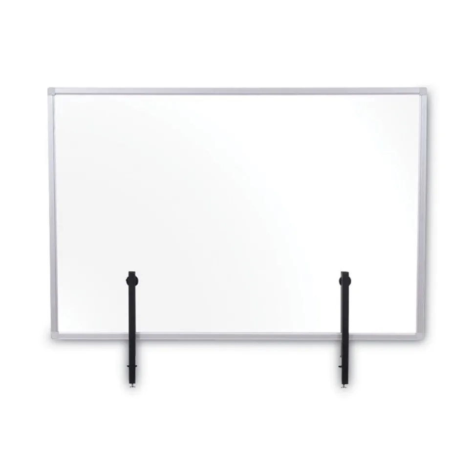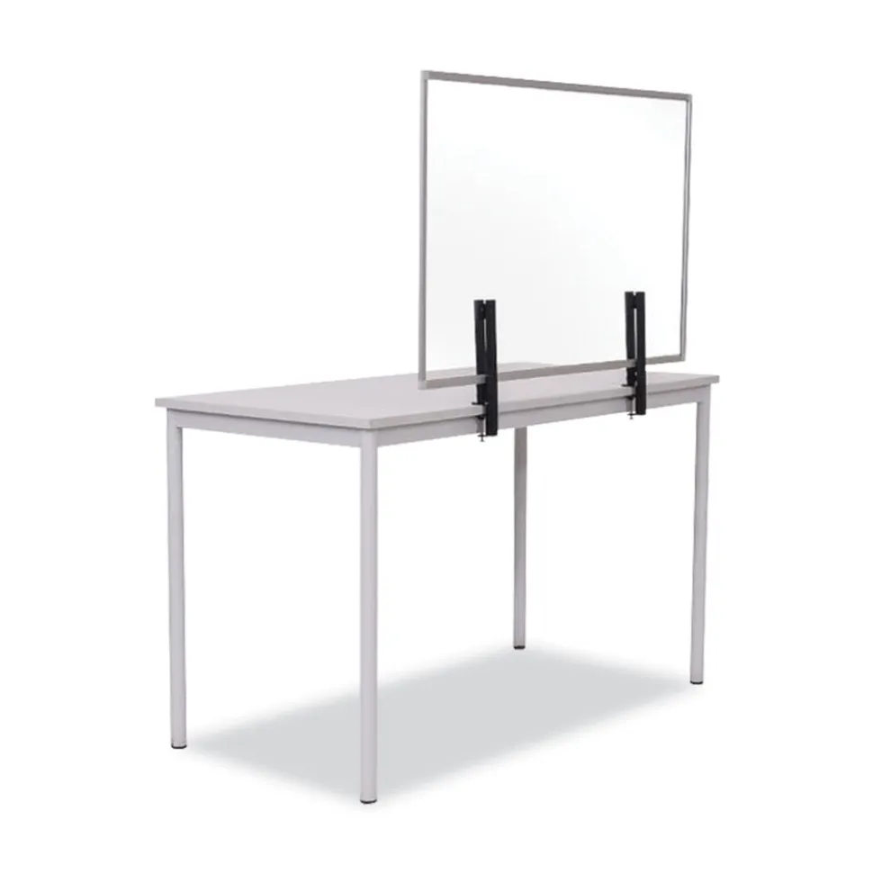 Due to the COVID-19 pandemic, social distancing and personal protection have become the new norm in order to stay safe. MasterVision introduces to you the Protector Series, designed specifically to protect you in public spaces. Transparent Glass Aluminum Desktop Divider allows users to stay protected while maintaining visibility. Ideal product for desks and tables across multiple areas such as offices, restaurants and other public settings. Features an aluminum frame and a pair of robust clamps which attach to the tabletop or desktop.