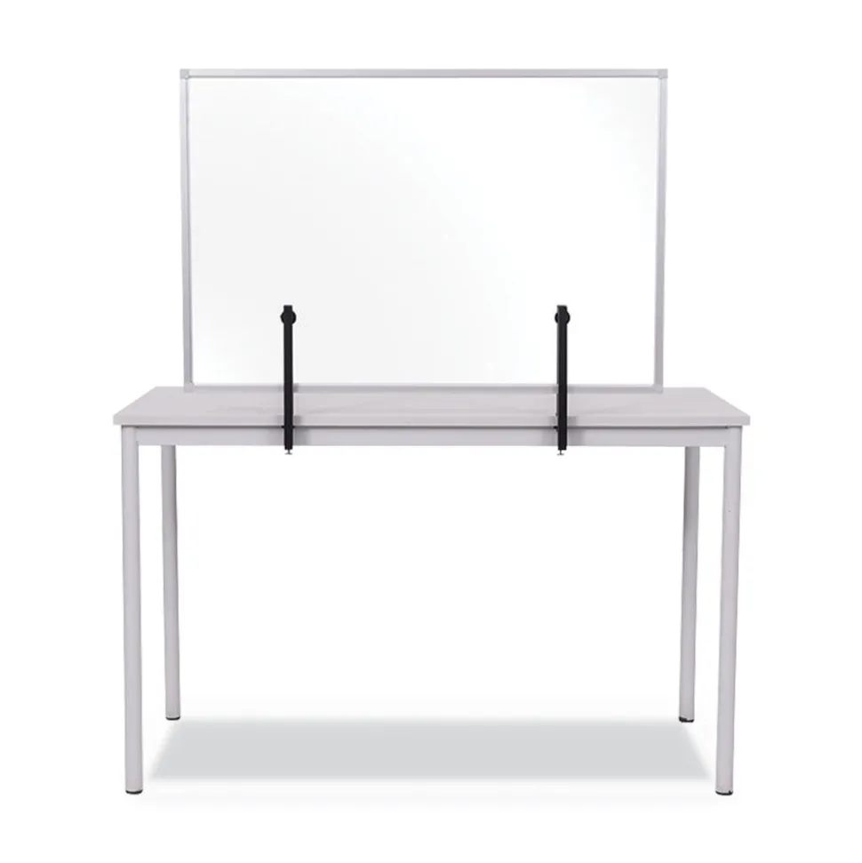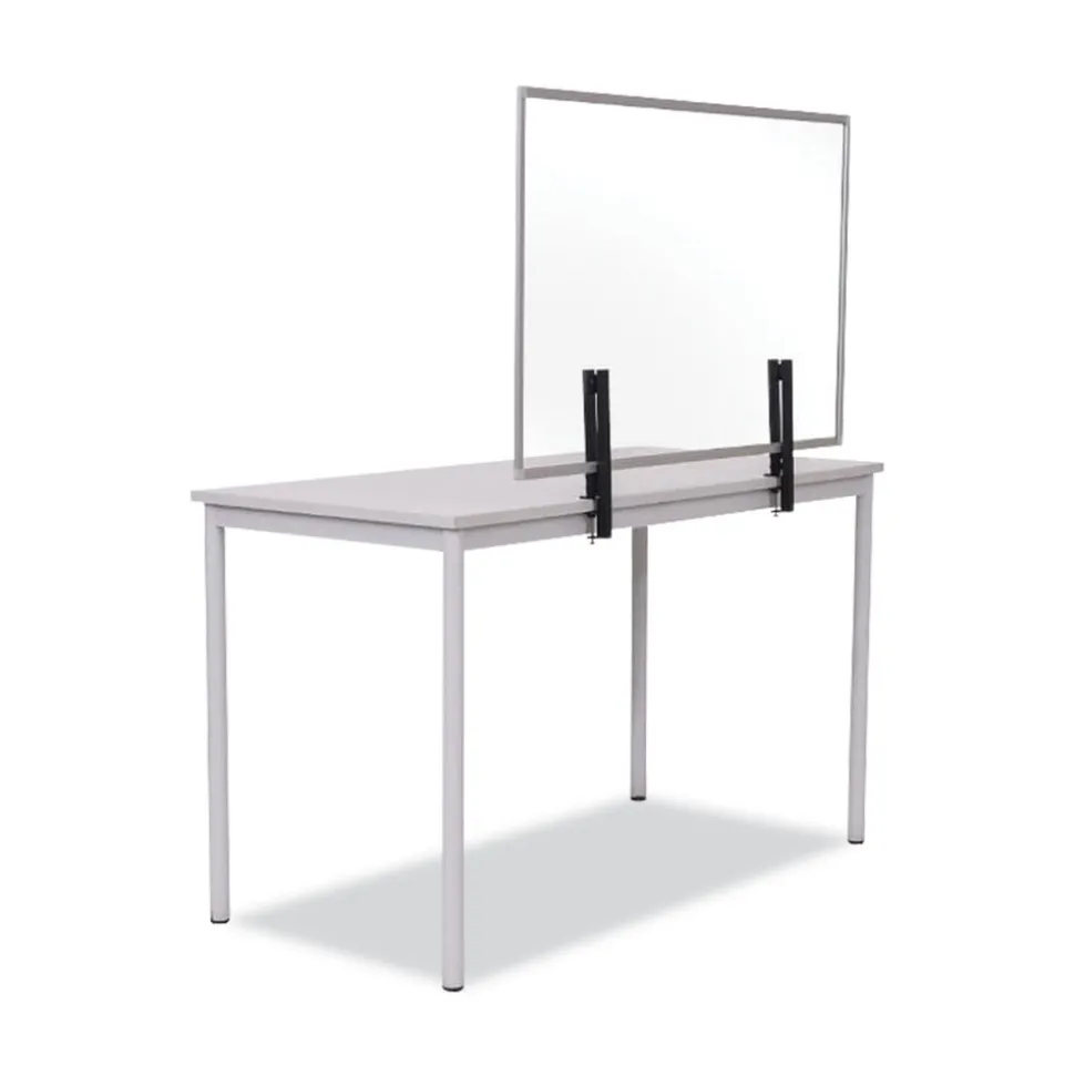 Due to the COVID-19 pandemic, social distancing and personal protection have become the new norm in order to stay safe. MasterVision introduces to you the Protector Series, designed specifically to protect you in public spaces. Transparent Glass Aluminum Desktop Divider allows users to stay protected while maintaining visibility. Ideal product for desks and tables across multiple areas such as offices, restaurants and other public settings. Features an aluminum frame and a pair of robust clamps which attach to the tabletop or desktop.