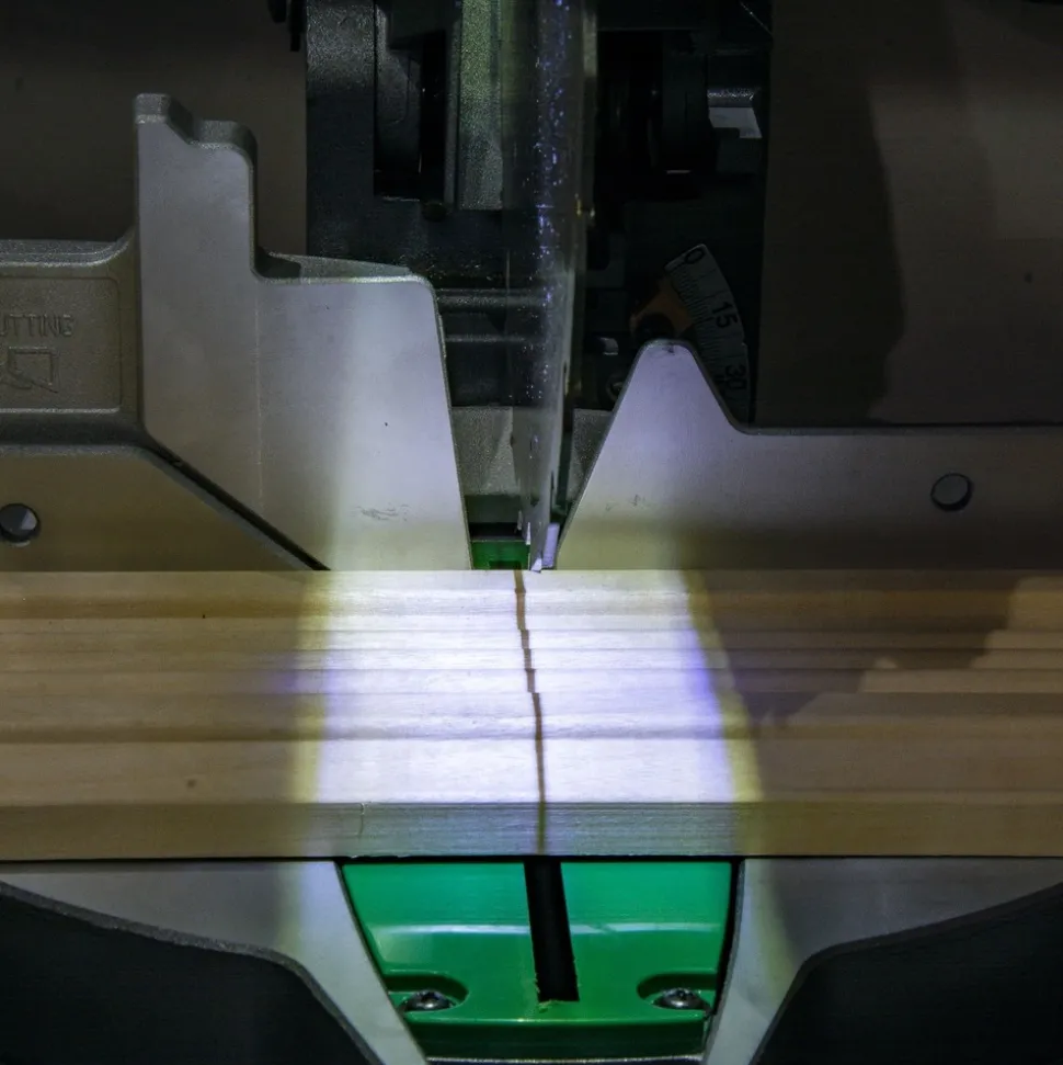 Xact Cut LED Shadow System: To clearly mark the cut line and works in any lighting condition for ultimate accuracy