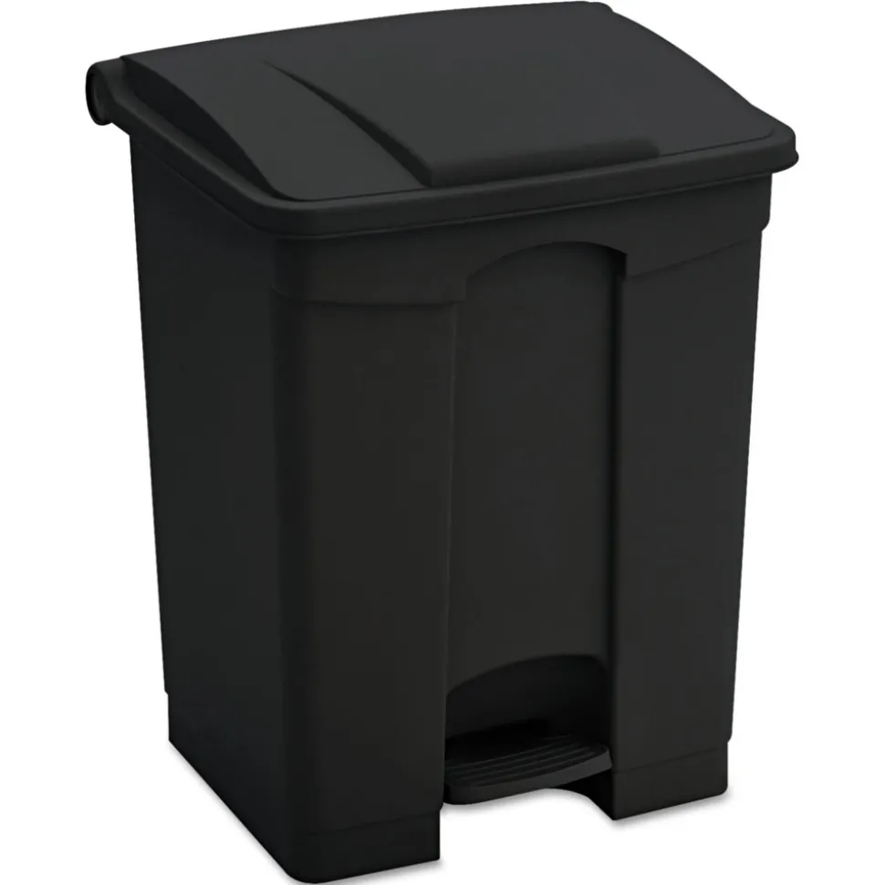 Large capacity for high traffic areas such as break rooms and gathering spaces. Step-on feature allows easy access to waste area, while lid helps to conceal contents. Plastic design for durability.
