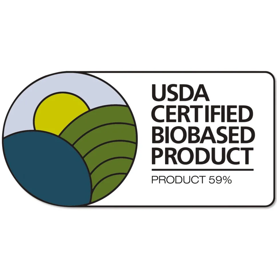 Composed of at least 59% biobased material including cover made with up to 25% plant based plastic.
