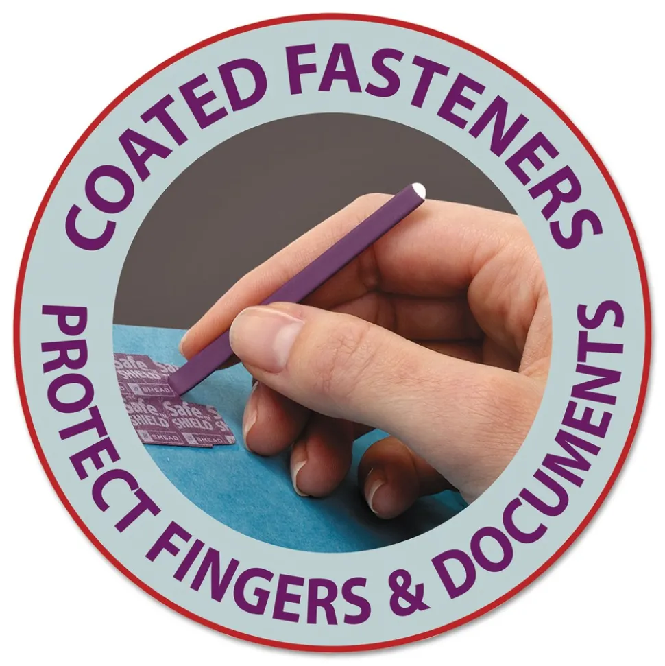 Patented SafeSHIELD® coated fasteners help prevent finger cuts, eliminate paper tears and reduce excessive fastener crinkling.