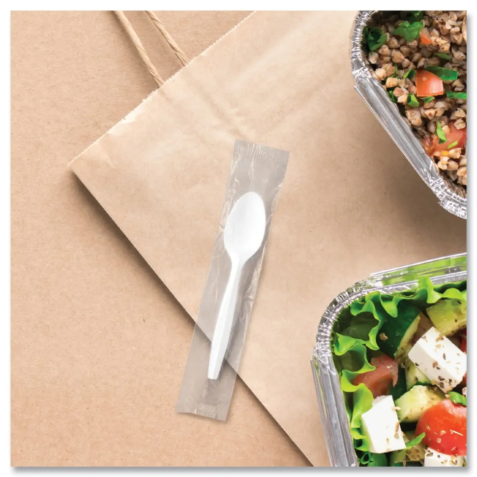 SOLO MOW3-0007 Individually Wrapped Regal Mediumweight Plastic Cutlery Spoon – White (1000/Carton)