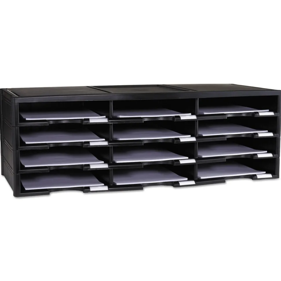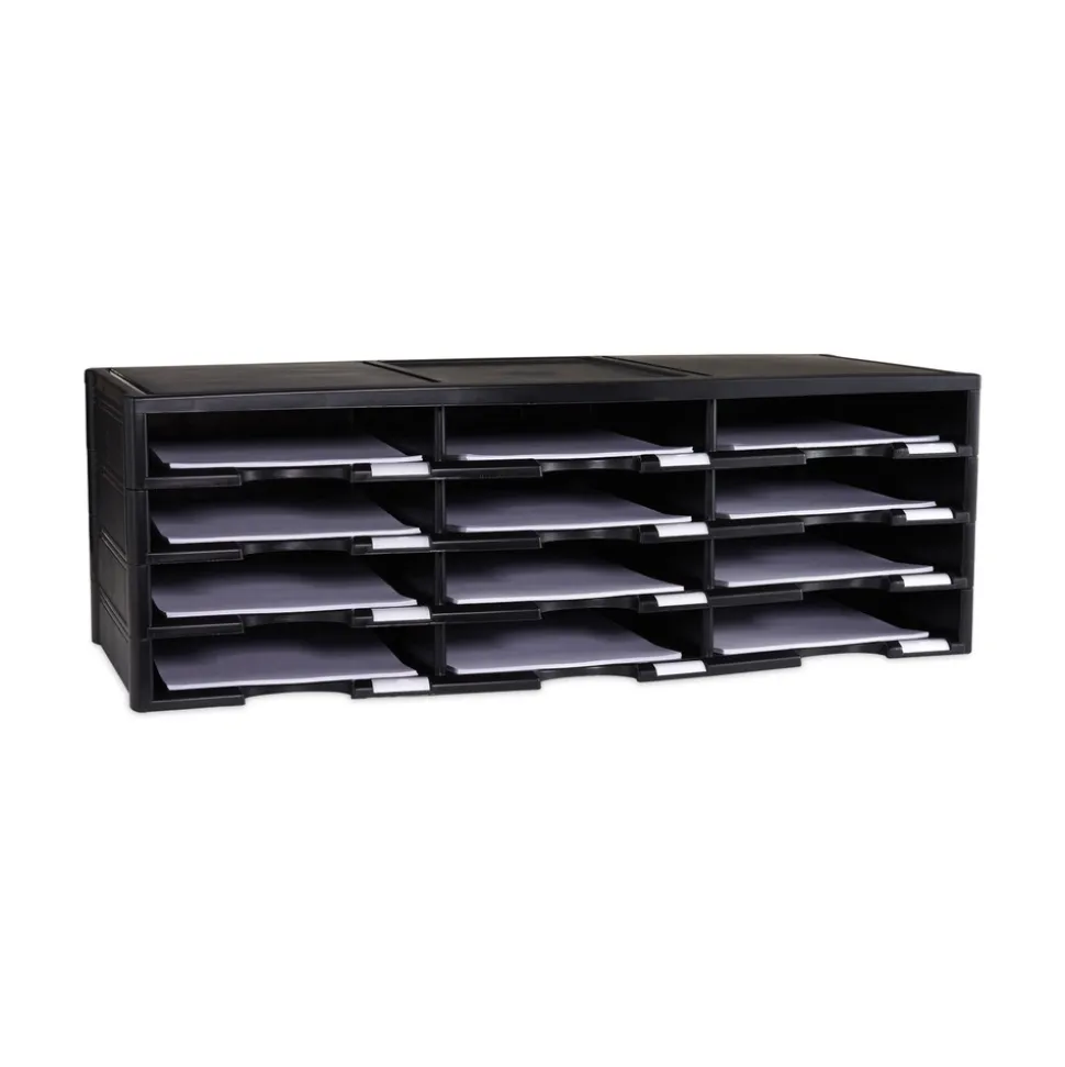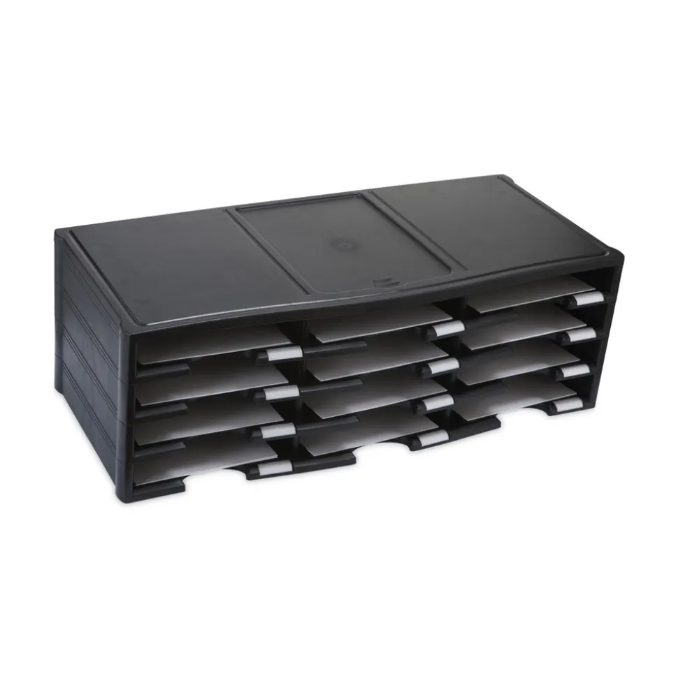 Storex 61602U01C 12 Compartments 10.63 in. x 13.3 in. x 31.4 in. Literature Organizer – Black