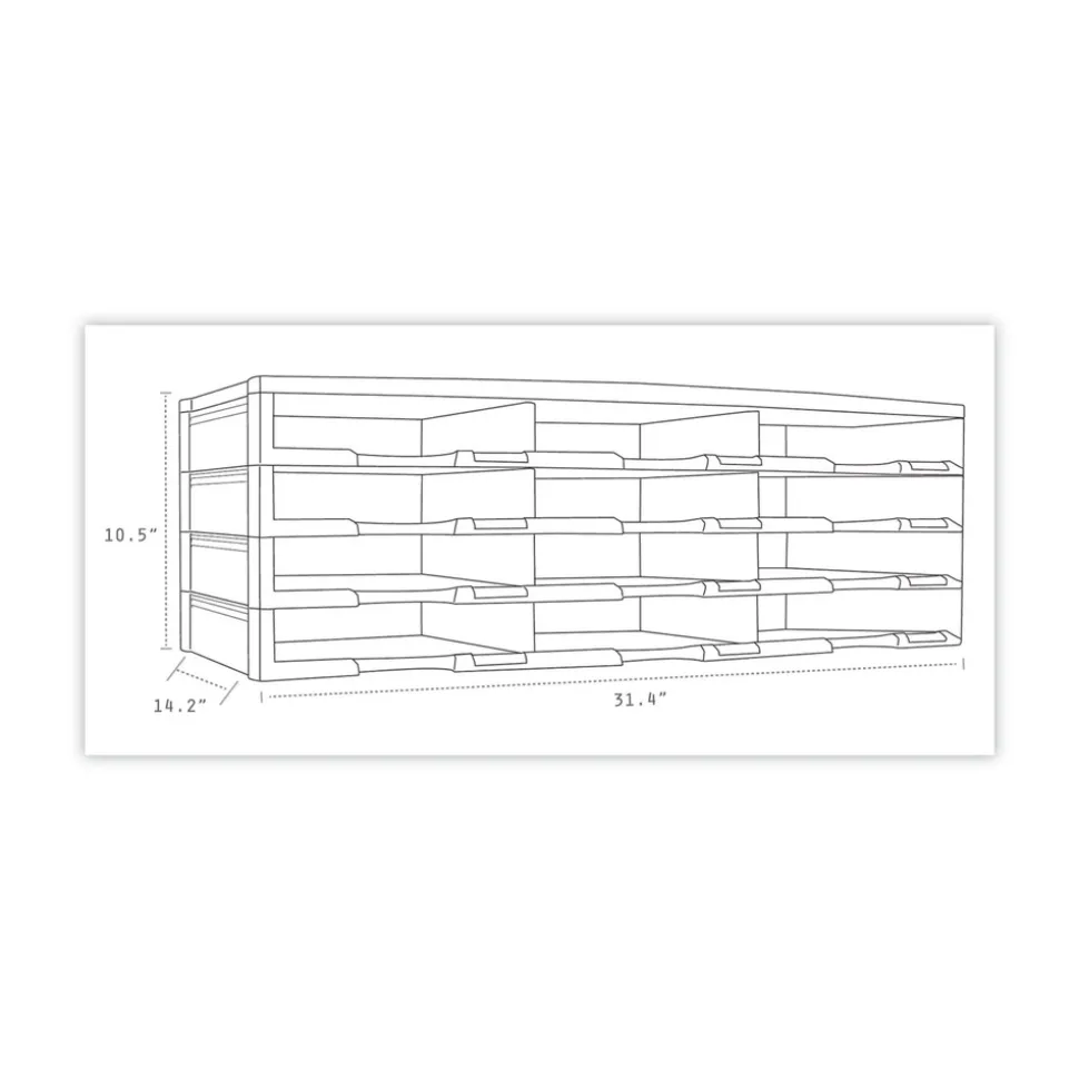 This organizer is made entirely of recycled plastic. Letter size documents or literature can be stored in one of the 12 9″ x 12″ x 2″ compartments. Each compartment features a convenient label holder to easily identify its contents. Holds over 60 lbs. Simple assembly requires no tools. Can be stacked up to 72 compartments high.