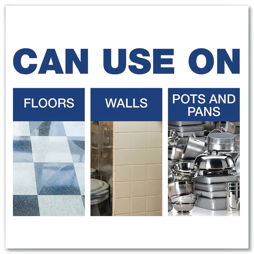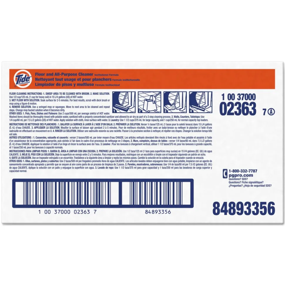 Tide all purpose floor cleaner is an economical and versatile cleaning solution that removes tough grease and lifts away tracked-in dirt. This multi surface cleaner can be used with chlorine bleach and works great in all areas of the kitchen. It can be used on floors, walls, pots and pans, quarry tiles and other Unwaxed floors, exhaust filter screens and hoods, cooler ceilings, walls and racks, mop heads, and outside areas, like concrete and dumpsters. It is formulated for industrial use.