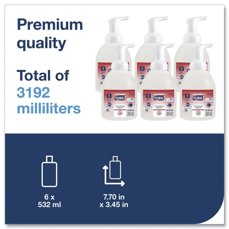 Tork 400022 18 oz. Pump Bottle Unscented Alcohol Foam Hand Sanitizer (6/Carton)