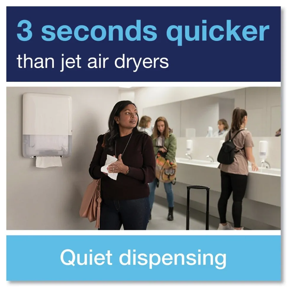Towels served in three seconds for washroom flow with no hold ups for guests