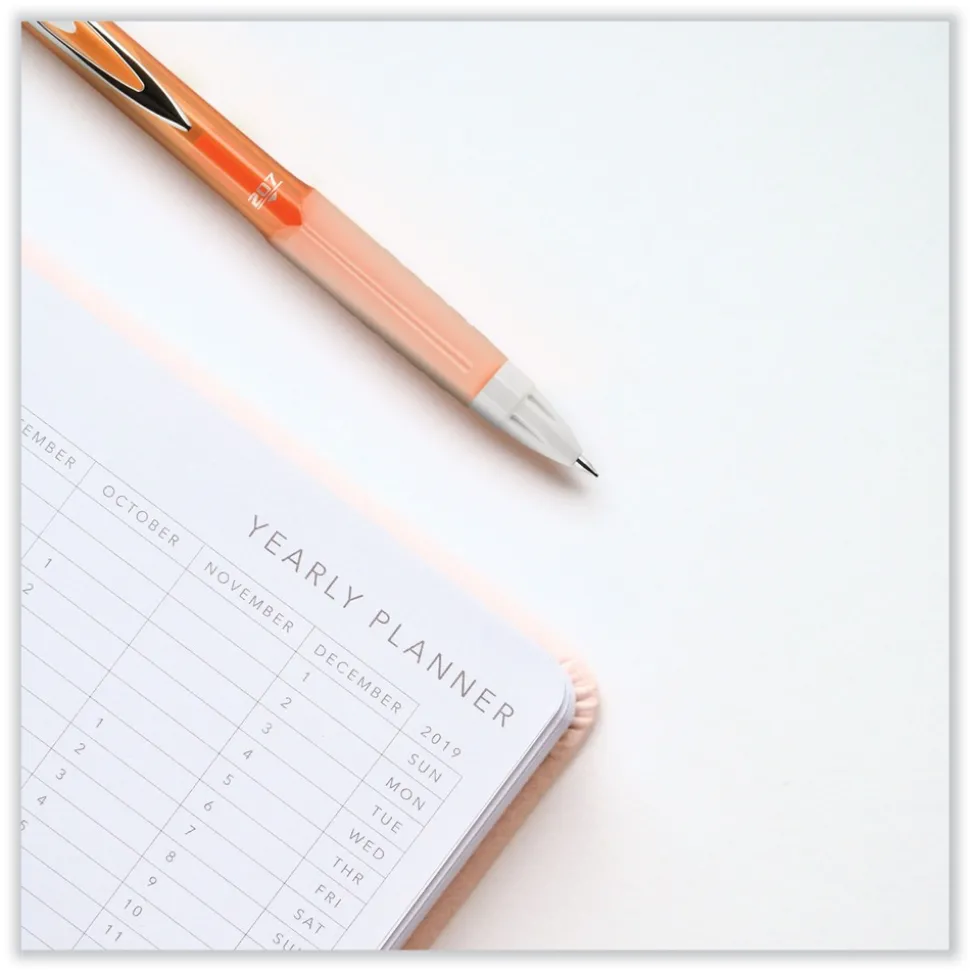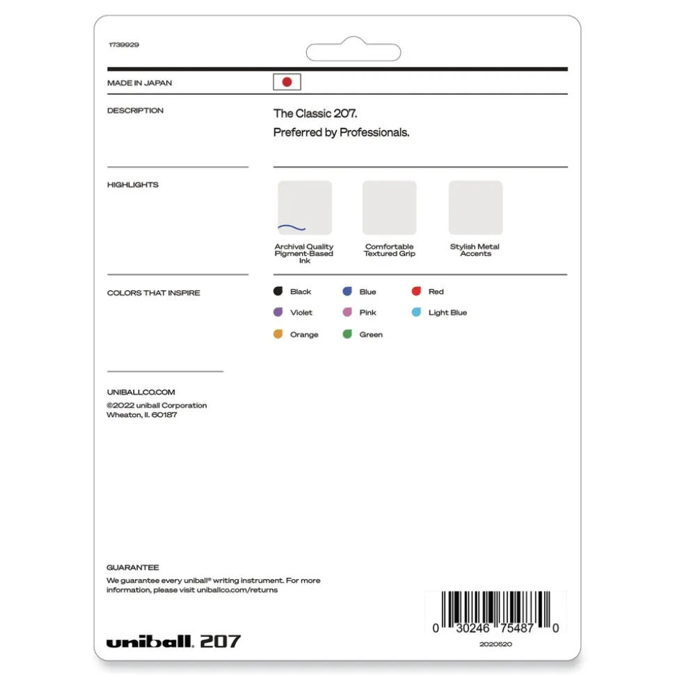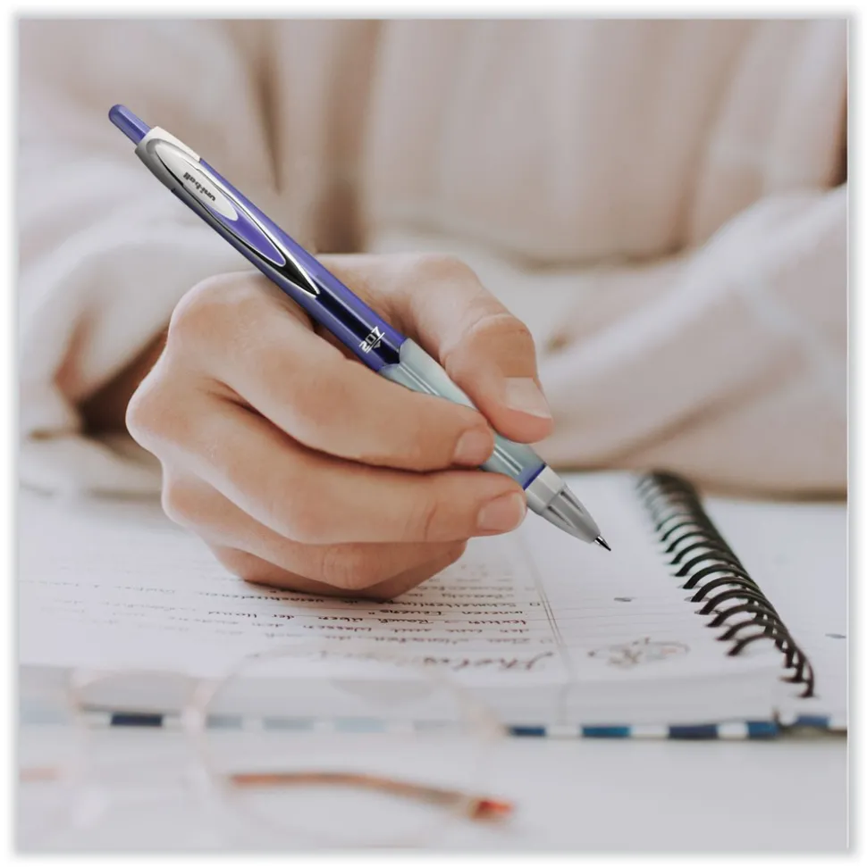 Stock your office, home or classroom with 207 Retractable Gel Pens from uni-ball available in various point sizes with a stainless steel tip that resists bending and breaking. Even-flowing, pigment-based gel ink delivers a smooth writing experience for intense, vibrant lines, ensuring that every mark is brilliantly communicated. Use these retractable gel pens for everyday writing tasks, check signing and all of your important signatures, trusting its quick-drying uni Super Ink. Innovative uni Super Ink technology effectively entraps the gel ink into the paper, producing fraud, fade and water-resistant documents that resist check washing or bleaching. A textured grip offers greater comfort and control as you continue writing, while a translucent ink window indicates the level of gel ink remaining, so you don’t run out unexpectedly. The sleek design of the 207 with modern metal accents gives the retractable gel pen a stylish touch.