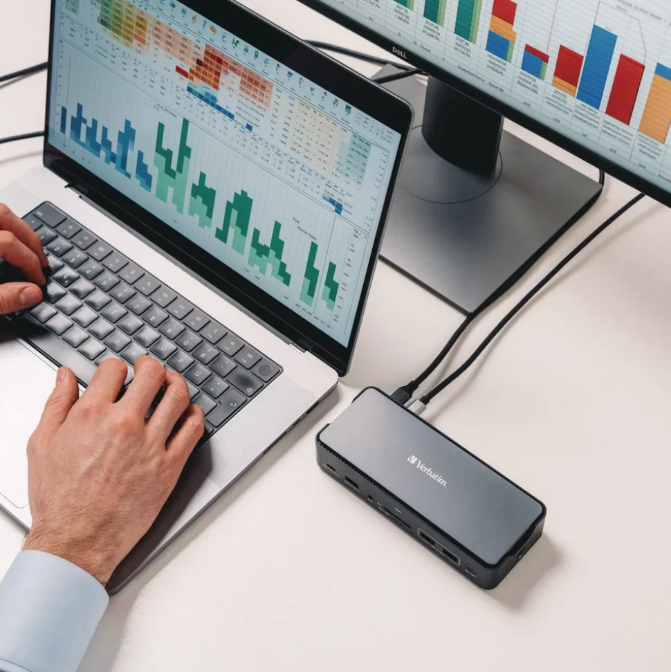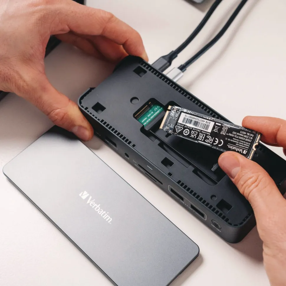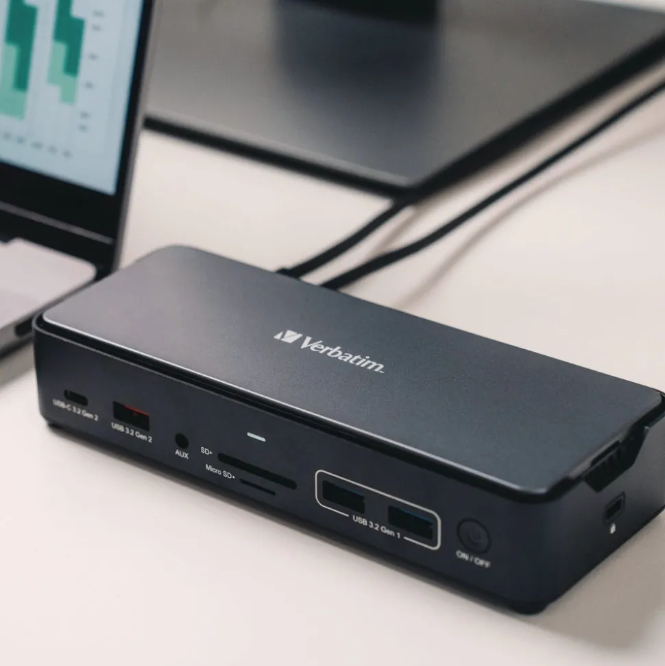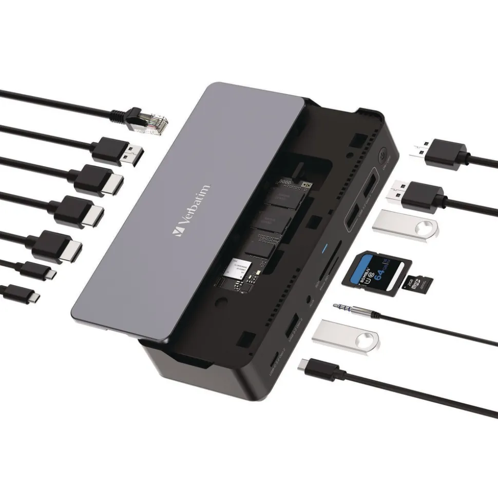 Verbatim 32174 15-in-1 256GB Vi3000 SSD Audio/DisplayPort/HDMI/Micro SD/RJ45/SD/USB-A/USB-C USB-C Pro Docking Station – Gray