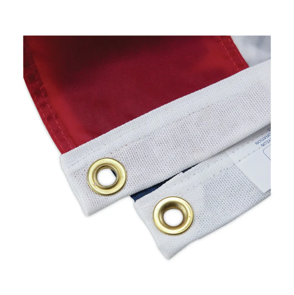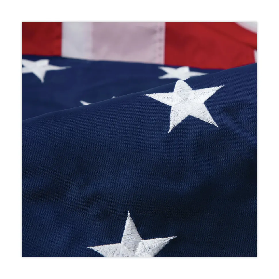 A premium United States flag made of durable, all weather, heavyweight nylon. Features sewn stripes and embroidered stars within white canvas headings and brass grommets for unparalleled resistance to weather and outdoor conditions.