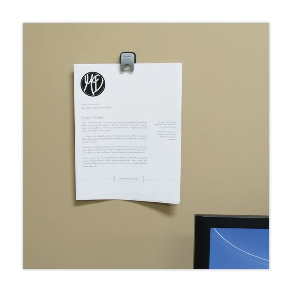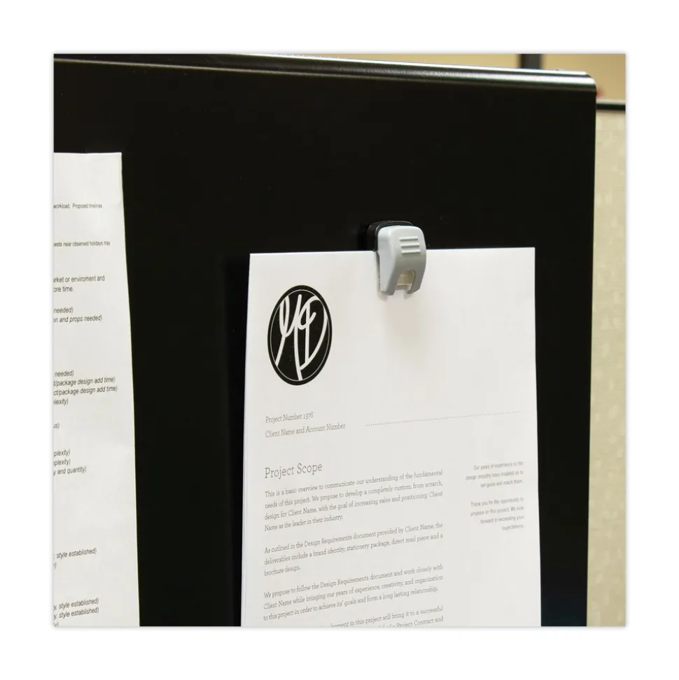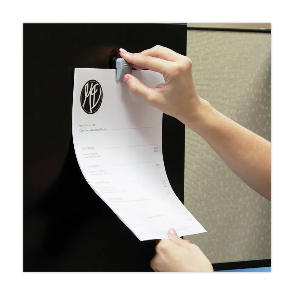 Unique Grip-A-Clip roller automatically adjusts the clip’s pitch and angle so that it can hold up to 20 sheets of standard weight paper. Two mounting options: magnetic or adhesive, provide the versatility you need to create message centers nearly anywhere. Go magnetic for file cabinets, lockers and refrigerators, or go adhesive for walls, cabinets and doors. Not for use on painted/papered walls. Either way, these clips have you covered.