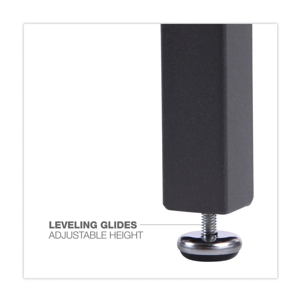 Modern, industrial-style desk provides a clean and compact workspace that’s perfect for the home or small office. Use it as a table, writing desk, or computer station to create a productive workspace in smaller areas. Attractive, durable laminate top with squared steel powder-coated legs. The cross-stability bar adds style and prevents rocking to ensure a stable feel. Leveling glides are included to adjust for uneven floors.