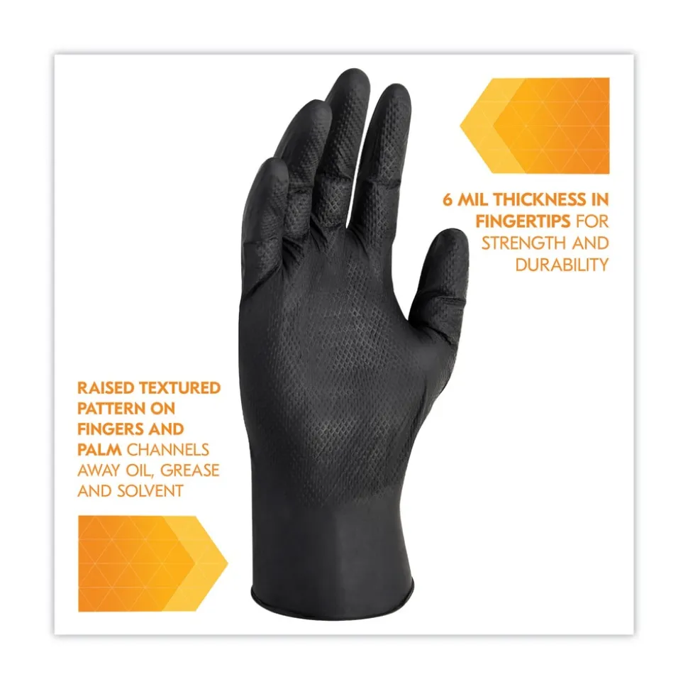 (900/Carton) 9.5 in. Long 6 mil Thick G10 Powder-Free Kraken Grip Nitrile Gloves – X-Large, Black – 49278