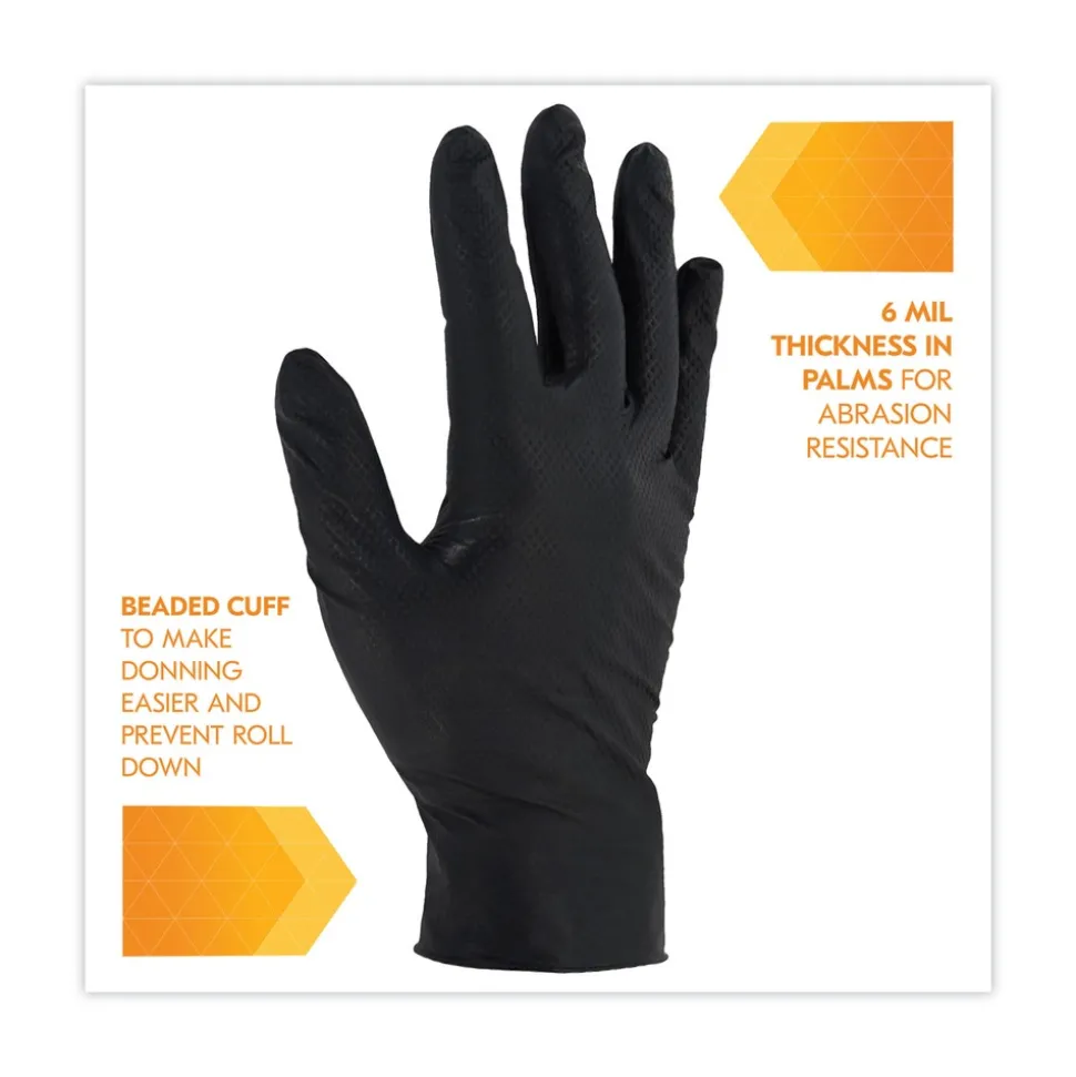 Features a 6 mil thickness on fingers and palm for comfort and protection