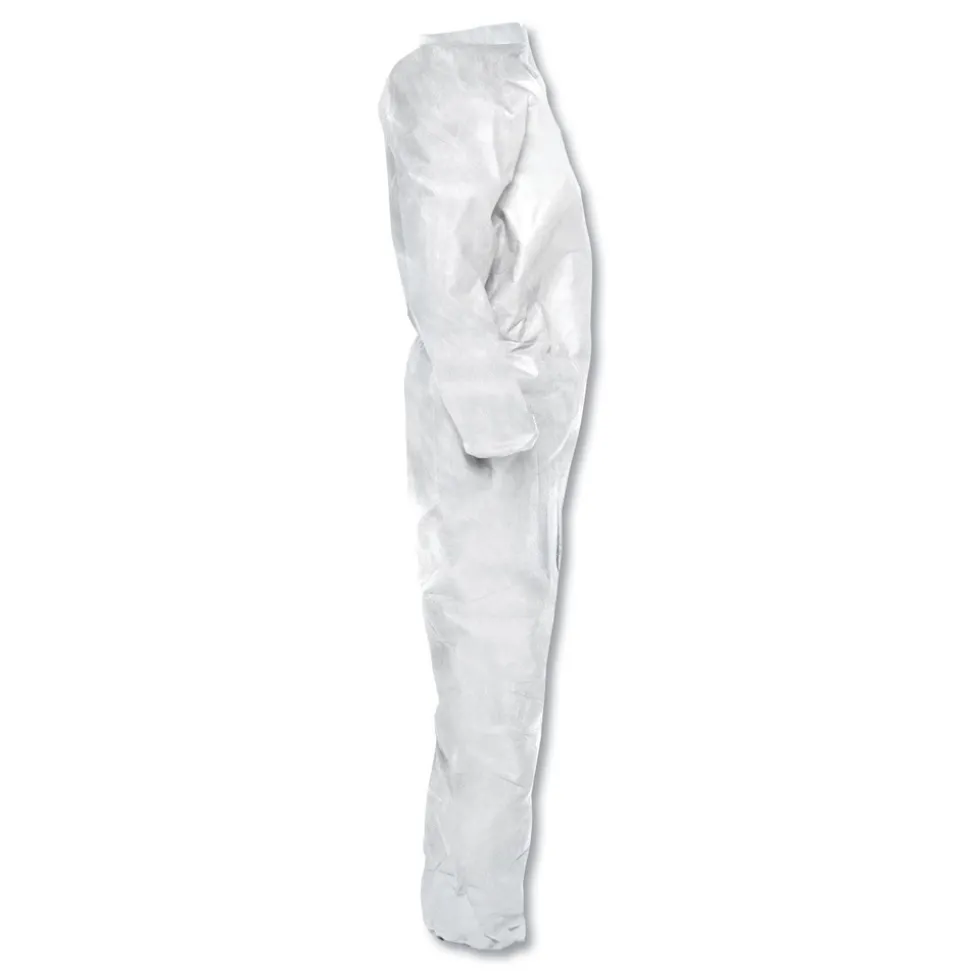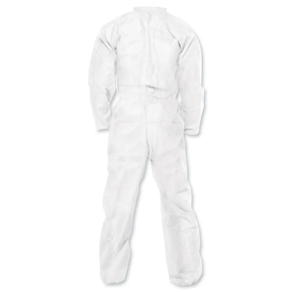 KleenGuard Personal Protective Equipment (PPE) enables rather than inhibits allowing for maximum productivity and safety for you and your employees. KleenGuard A20 Breathable Particle Protection Coveralls are designed to move with you and your employees while protecting against hazardous and non-hazardous dust. These protective garments offer superior particle holdout coupled with unmatched comfort attributes. The A20 fabric is comprised of 5 layers of stacked barrier protection (SMMMS) against hazardous particles. Features to provide more protection include the seamless front (for primary exposure area), 1 in. zipper flap, an Elastic-Back and elastic wrists and ankles. They feature Reflex design, which offers excellent fit and freedom of movement. The seamless front provides more protection to the primary exposure area. They are a popular choice for dusty environments such as laboratories and remediation, as well as pesticide applications and as decontamination modesty garments. Making the right Personal Protection choice is difficult. Perform with distinction with KleenGuard Personal Protective Equipment (PPE).
