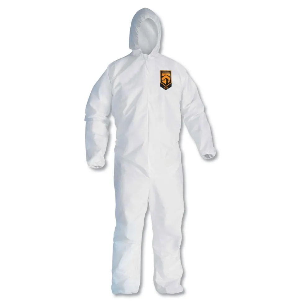 Ansell KCC 46114 A30 Elastic-Back and Cuff Hooded Coveralls – Extra Large, White (25/Carton)