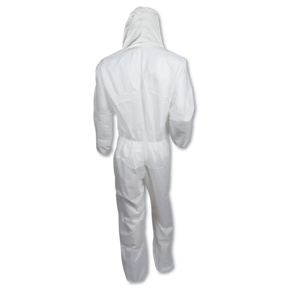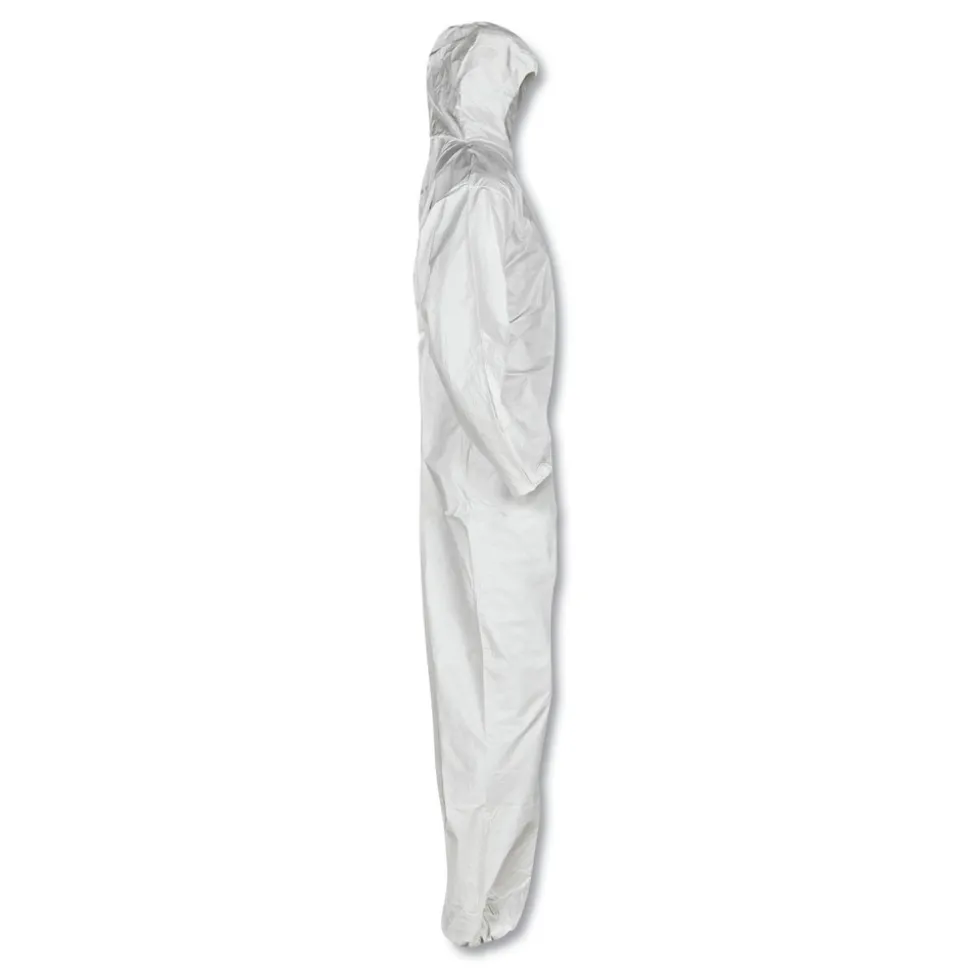 Ansell A30 Elastic-Back and Cuff Hooded Coveralls – Medium, White (25/Carton)