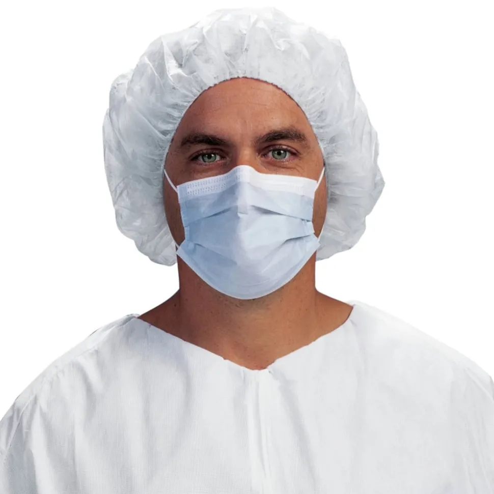 Pleat style mask with earloops provides excellent coverage and comfort. Dual snaps for easy adjustment. Exceptional breathability for longtime wear. Constructed of low-linting apertured polyethylene film.