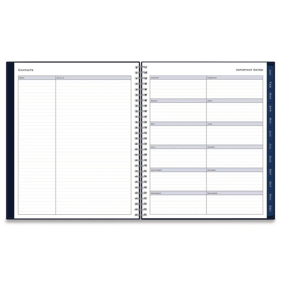 Add sophisticated appeal to your planning tasks with the sleek and professional Passages Monthly Planner. Durable, tear-resistant monthly tabs allow for easy access to your monthly views, while the two-page layouts offer plenty of writing space for detailed planning. Six untabbed, past-year monthly spreads help you transition into the new year, and a handy interior storage pocket allows you to carry along important loose documents. Durable covers and polished metal twin-wire binding enhance and preserve the book’s elegant appearance. Thick, premium-quality, acid-free paper reduces the potential for ink bleed through.