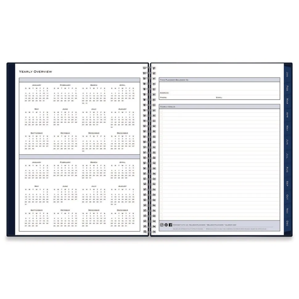 Add sophisticated appeal to your planning tasks with the Passages sleek and professional weekly/monthly planner. Flexible weekly spreads feature an open-format design with ample space for daily appointments, tasks and takeaways. For longer-range planning, the tabbed monthly views provide all the basics plus a separate ruled space for important notations. Six past-year, untabbed monthly spreads help you transition into the new year, while additional pages for yearly goals, contacts, important dates and more help you stay on track. Durable, twin-wire binding allows the book to lie flat when open, and thick, high-quality paper stock minimizes the potential for ink bleed through.