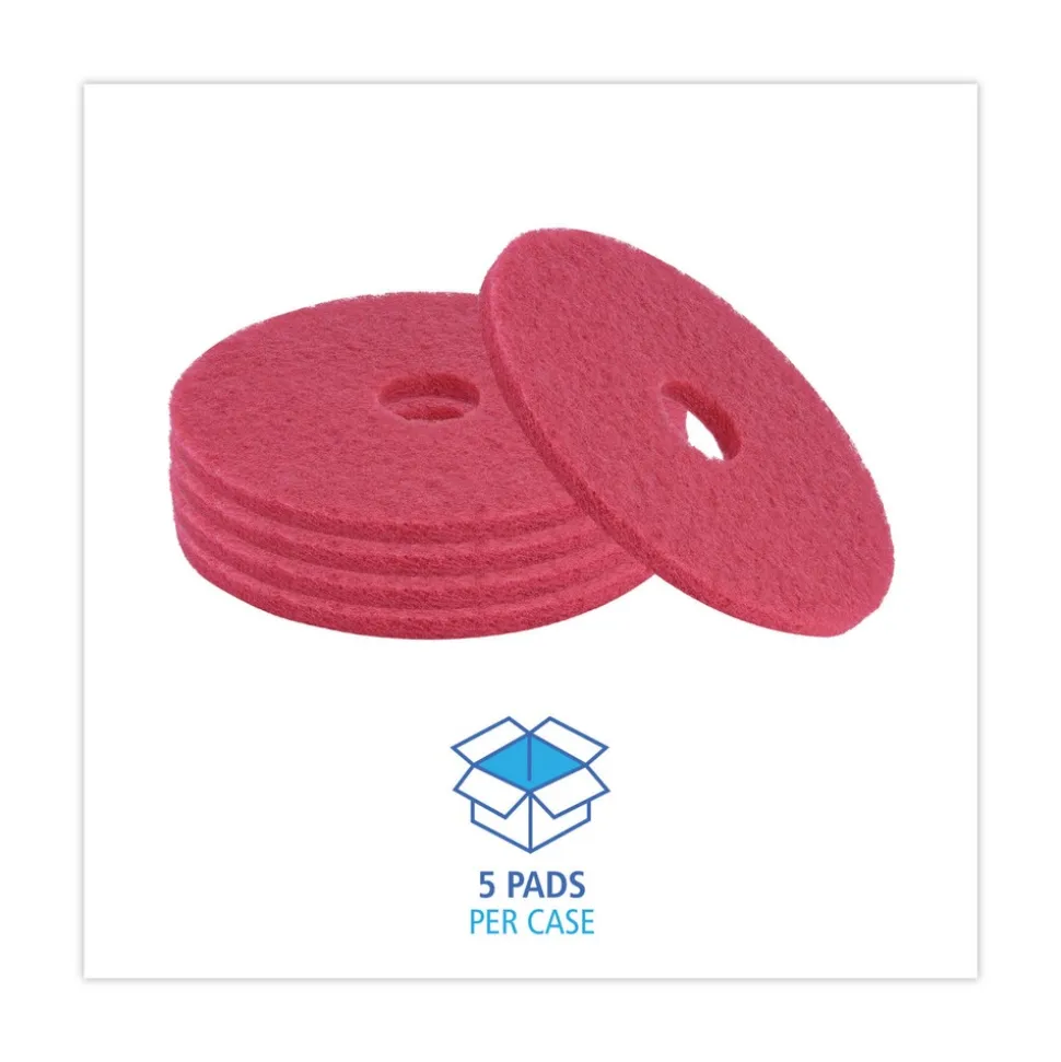 Boardwalk BWK4016RED 16 in. Diameter Buffing Floor Pads – Red (5/Carton)