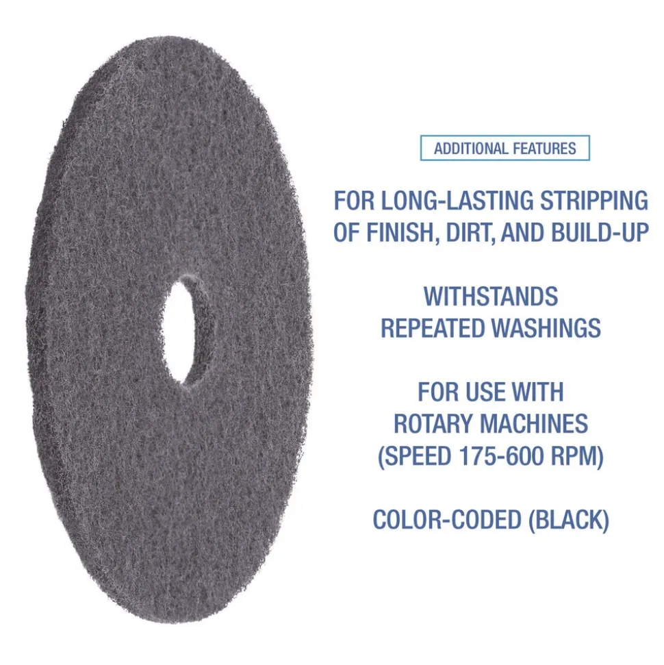 (5/Carton) 19 in. Diameter High Performance Stripping Floor Pads – Black – 4019HIP