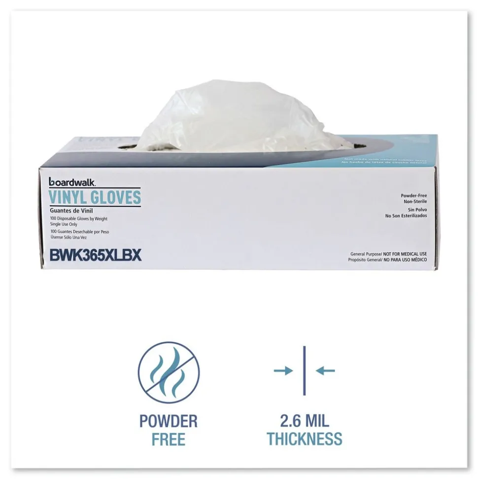 Boardwalk BWK365XLCT 2.6 mil 9.5 in. Long Powder-Free General Purpose Vinyl Gloves – Extra Large, Clear (100/Box, 10 Boxes/Carton)