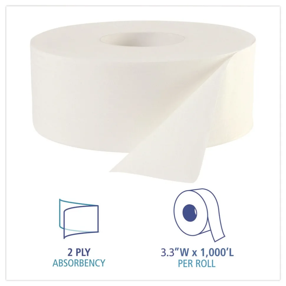 Boardwalk B6100 3.5 in. x 1000 ft. JRT Septic Safe 2-Ply Bath Tissue – Jumbo, White (12/Carton)