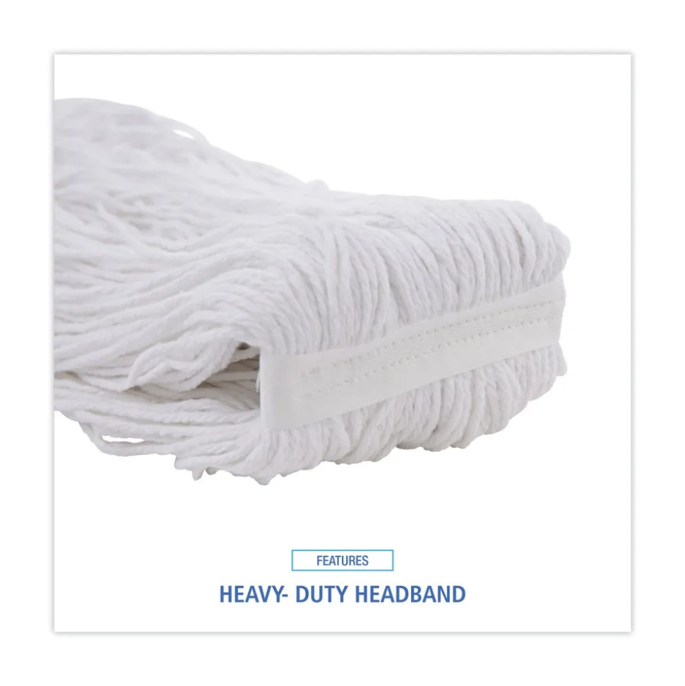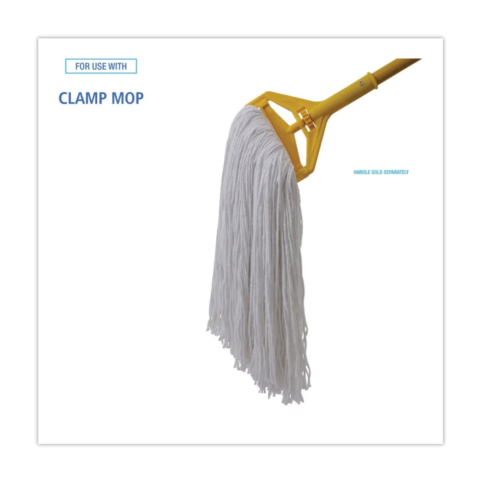 Clean up quicker with a high-quality, ultra-absorbent mop head. Cut-end design minimizes snags. Heavy-duty headband ensures secure attachment to handle. For use with clamp-style mop handles and wringer bucket (sold separately). Soft enough to clean delicate floors, yet durable enough to handle harsh chemicals and stains. Great for use in industrial settings, including restrooms, hallways, offices, lobby areas, kitchens, and dining areas.