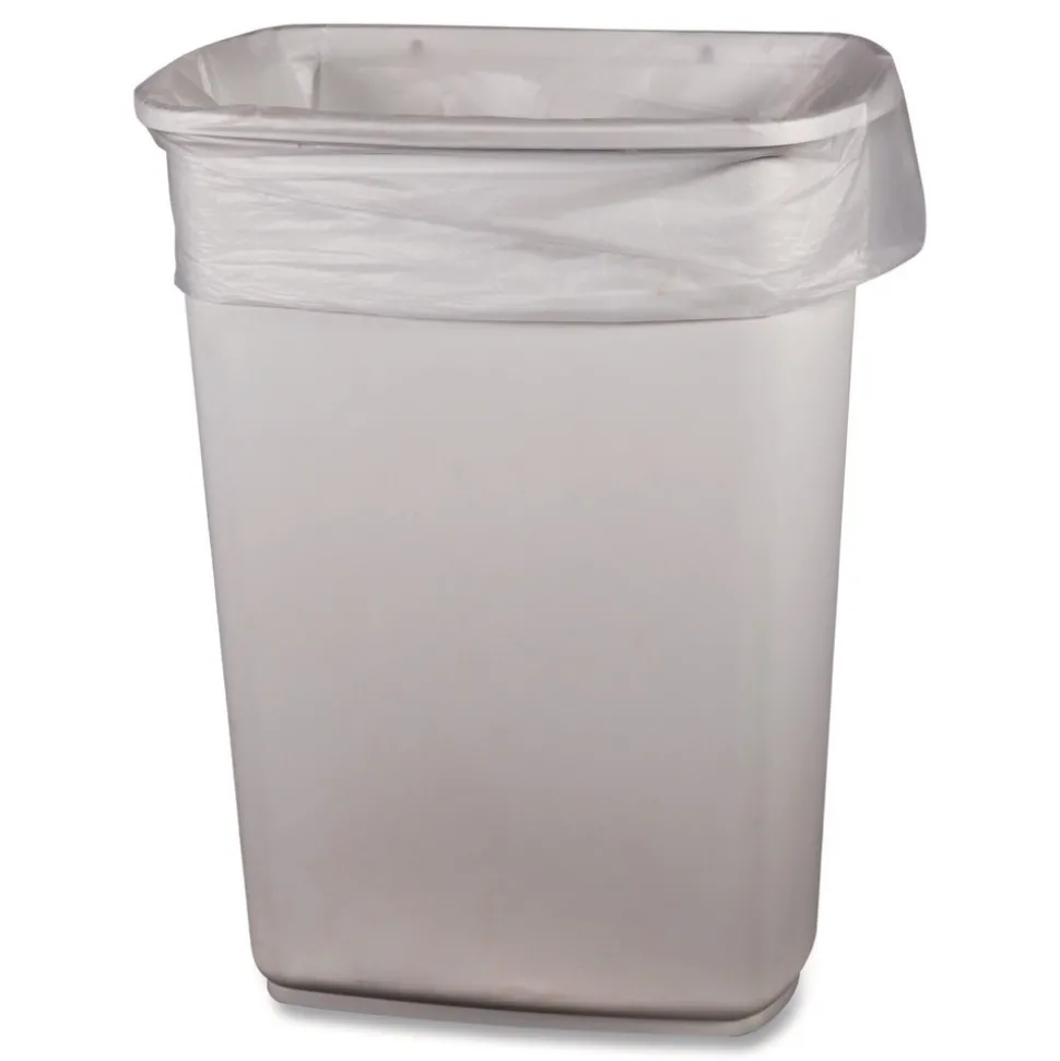Low-density liners provide superior performance at an affordable price. Made from high-quality raw materials, mineral reinforced to enhance strength and puncture-resistance. Use with heavy loads, including sharp or abrasive materials. The sturdy, star-seal bottom helps prevent leaks and provides even weight distribution for easy removal from receptacle. Coreless perforated rolls are easy to use and great for dispensing on the go. A quality can liner that provides trusted waste collection for heavy-duty applications.
