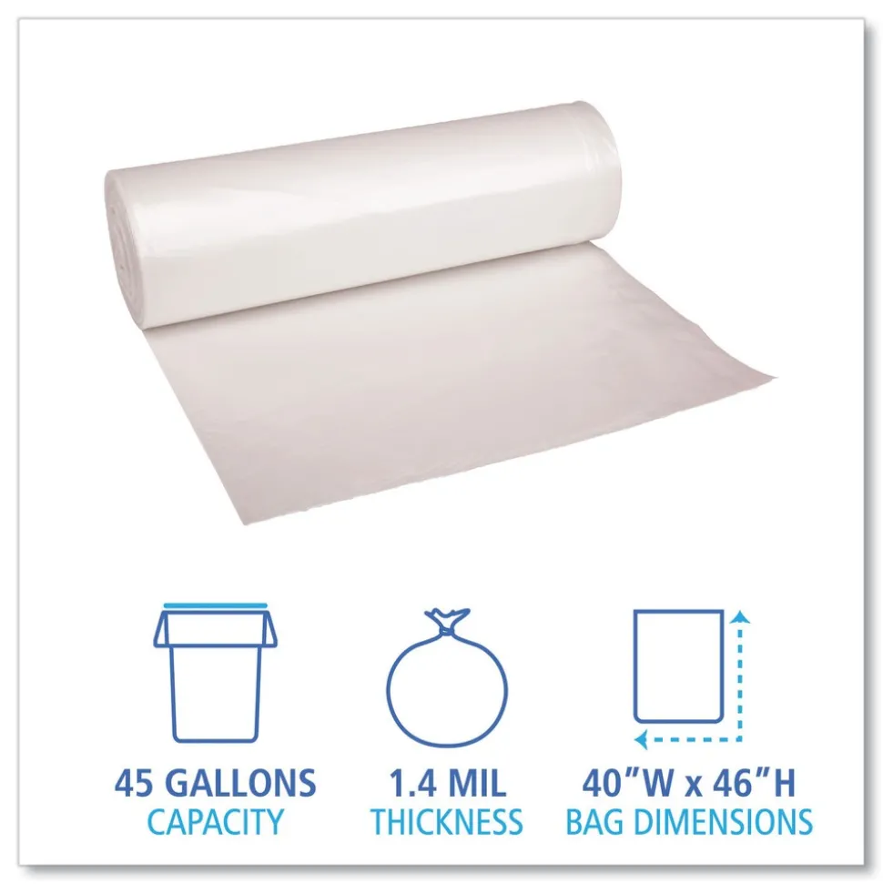 (100/Carton) 40 in. x 46 in. 45 gal. 1.4 mil Recycled Low-Density Polyethylene Can Liners – Clear – 535