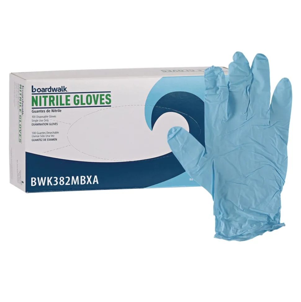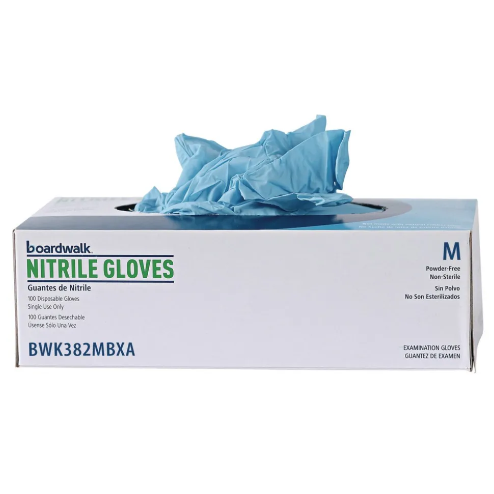 Boardwalk 382MCTA 5 mil 9.5 in. Long Powder-Free Disposable Examination Nitrile Gloves – Medium, Blue (100/Box, 10 Boxes/Carton)