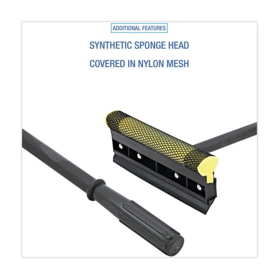 Boardwalk General-Duty Squeegee is a convenient two-in-one tool that’s ideal for cleaning windows. Constructed with an 8 in. Synthetic sponge head that’s covered in nylon mesh for abrasive scrubbing and added durability. Use with window washing cleaner to remove dirt and grime. When you’re finished scrubbing, simply rotate the squeegee to wipe it clean. The black, rubber blade propels water down without streaks. Built with a sturdy, wipeable handle.